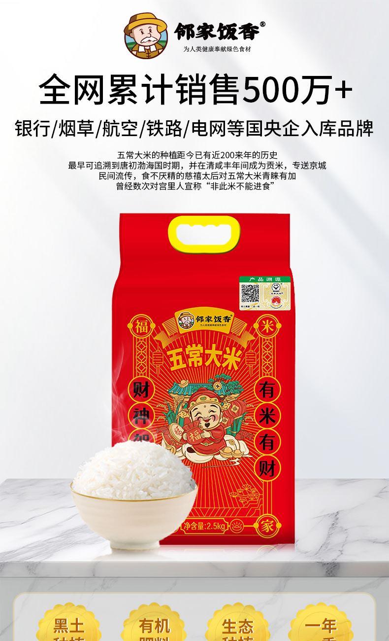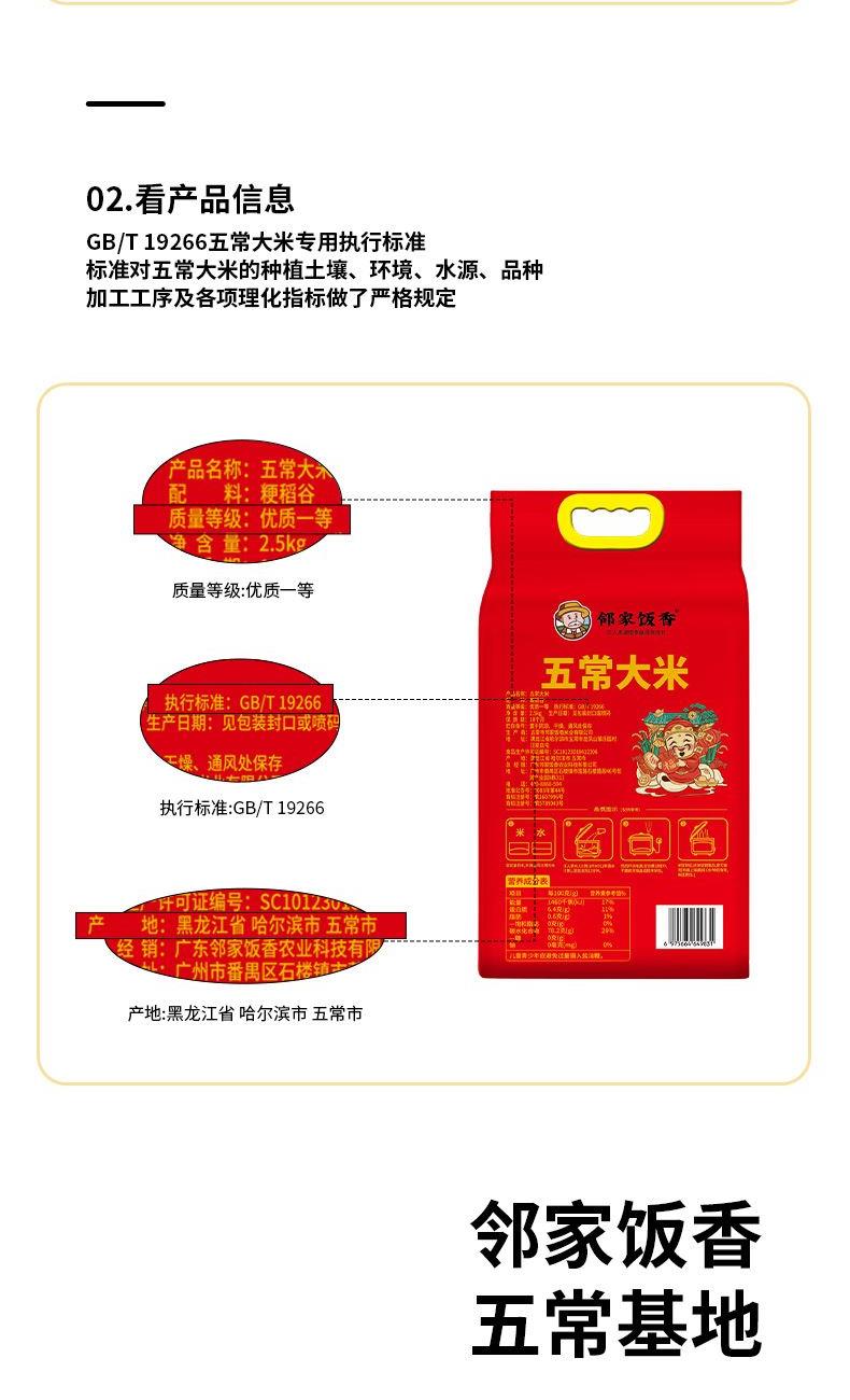 邻家饭香二级产区五常大米2.5kg/袋真空双层LJFX76