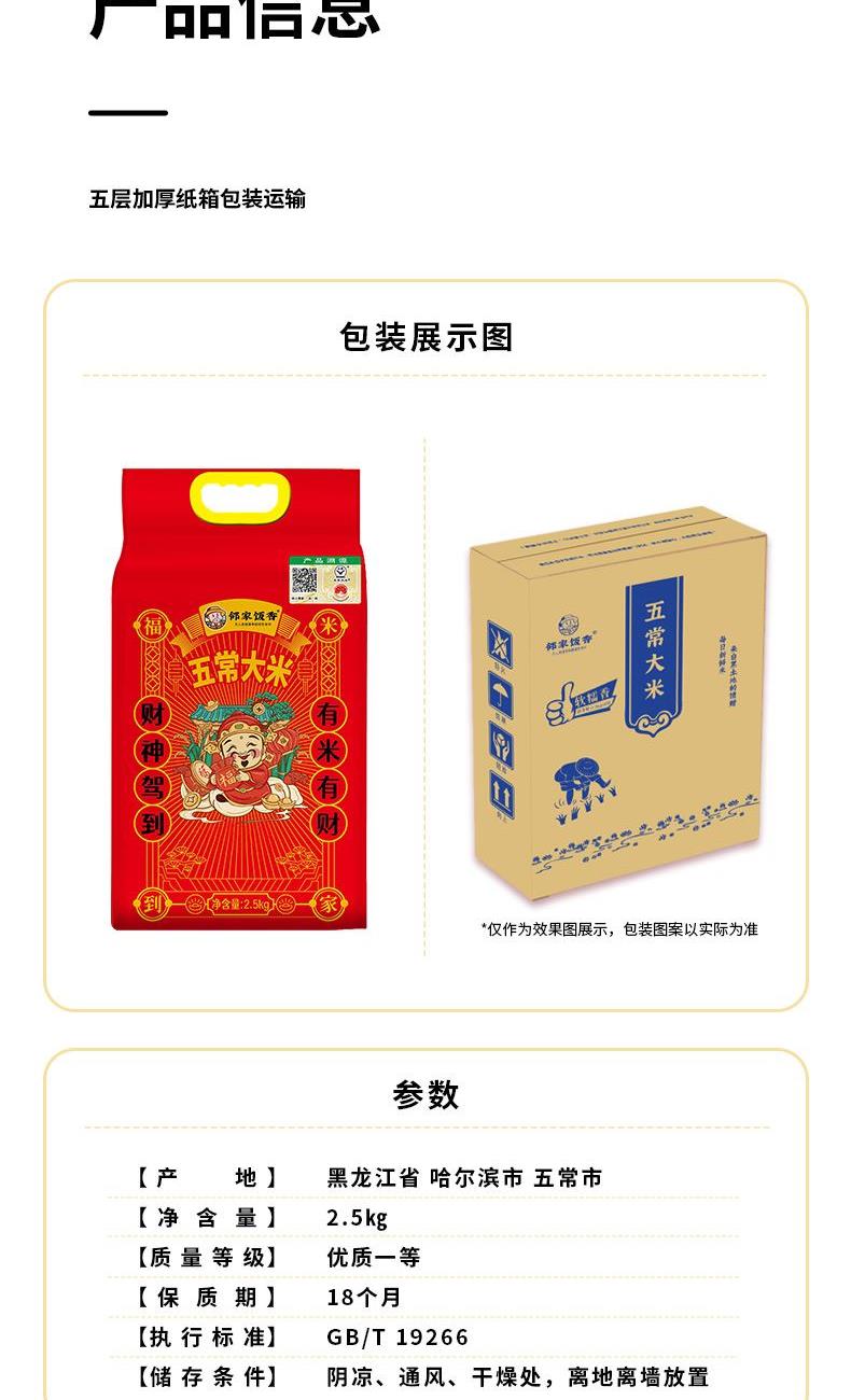 规格:2.5kg/袋 产品尺寸(带包装):285*215*80 保质期:18个月 产地:黑龙江省五常市 发货地:黑龙江省五常市/广东省广州市