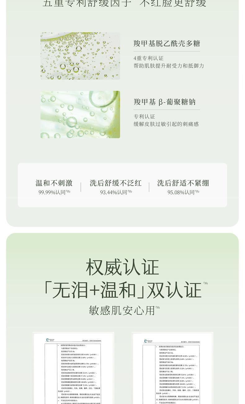 1、油皮不油光,干皮更水润。 2、燕麦保湿款,洗后不拔干,水润保湿,舒缓肌肤