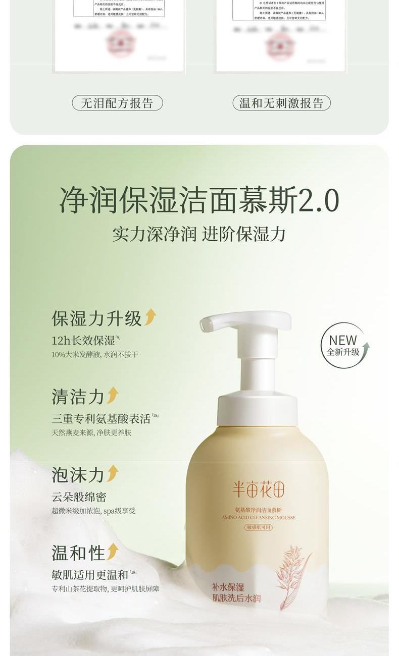 半亩花田净润氨基酸洁面慕斯300g保湿