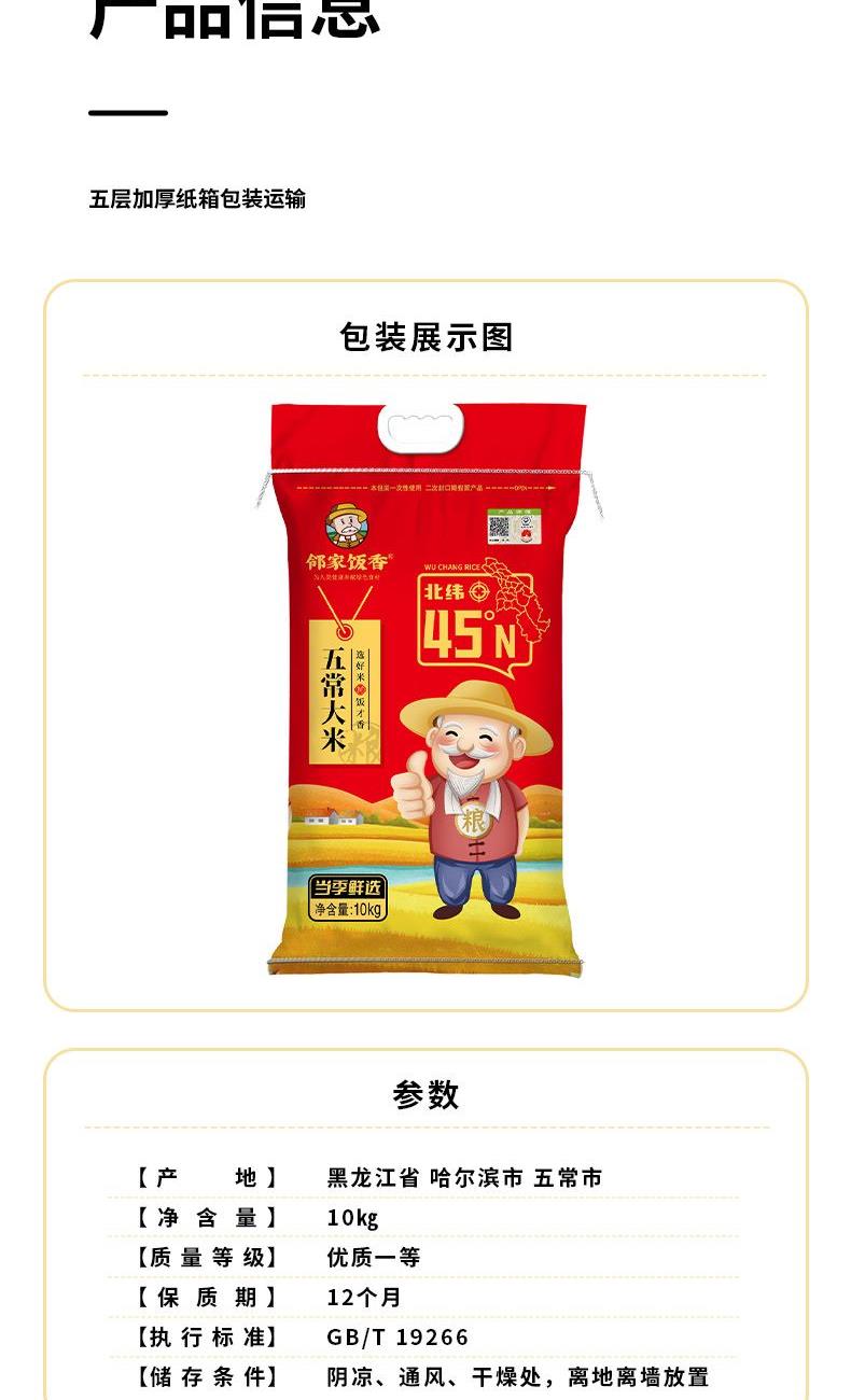 邻家饭香五常大米10kg/袋编织袋装非真空包装LJFX268