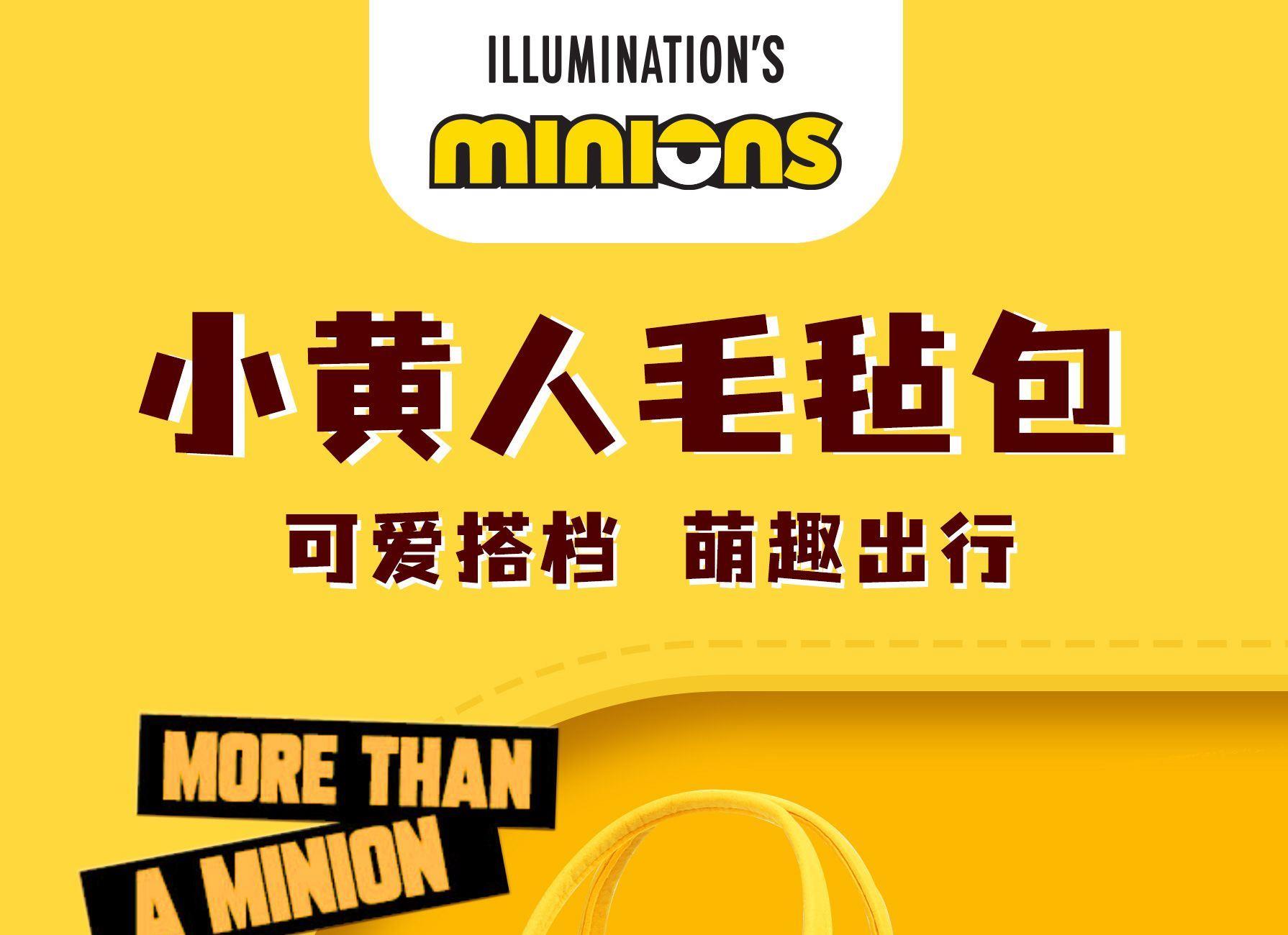 小黄人大眼萌系列-香蕉系列-黄色毛毡托特包