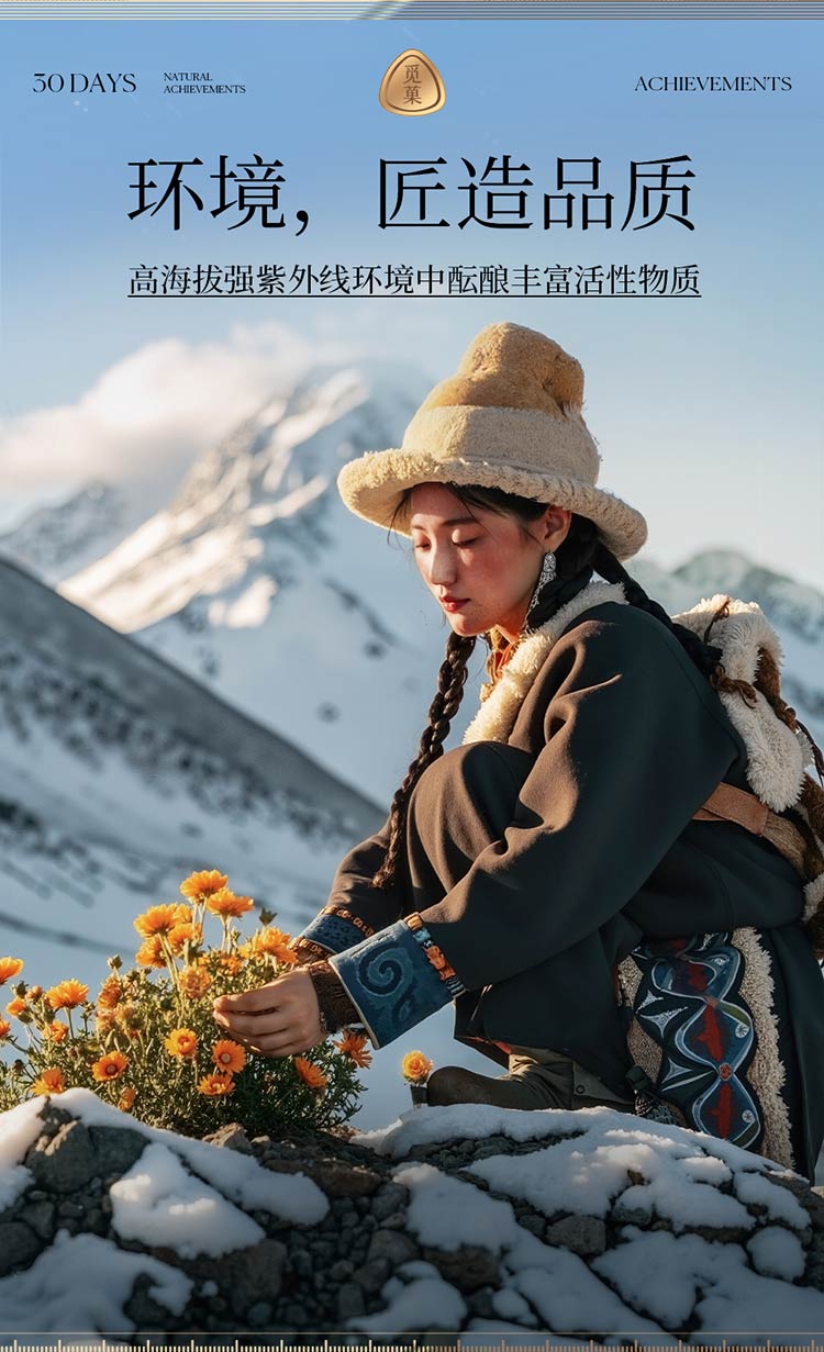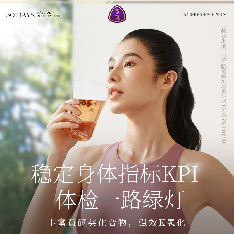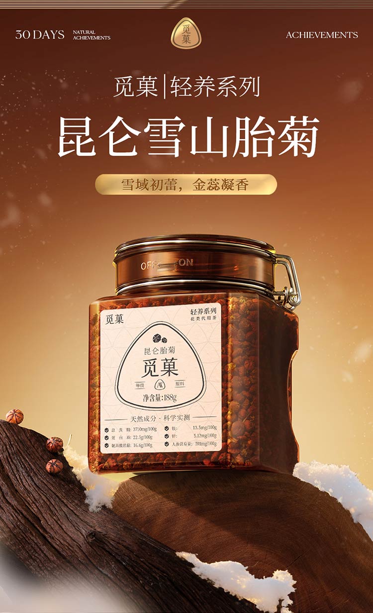 生来高贵 源自新疆克里阳 雪菊之乡 天然菊香 只选头序花蕾初开嫩芽 菊香未散 ,隐于花苞 留存更多天然活性物质 富含营养 1杯泡饮浓缩16种氨基酸 ≈6倍全脂鲜奶