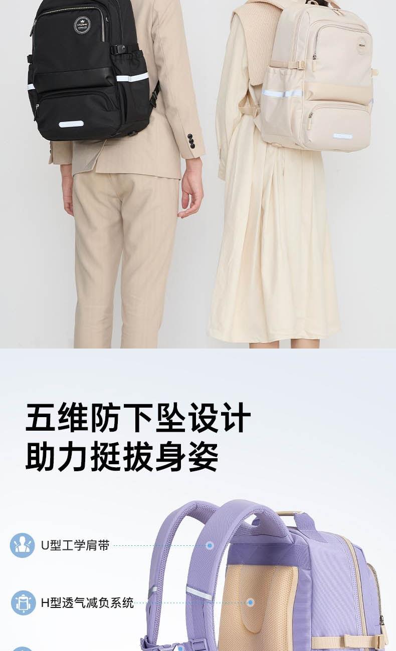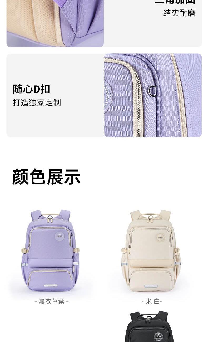 货号:CX5190 主体面料:织物;里料:织物 颜色:钢琴黑、米白、薰衣草紫 定位:150-175CM以上/ 初高中生书包 净重:0.74kg 26.2L