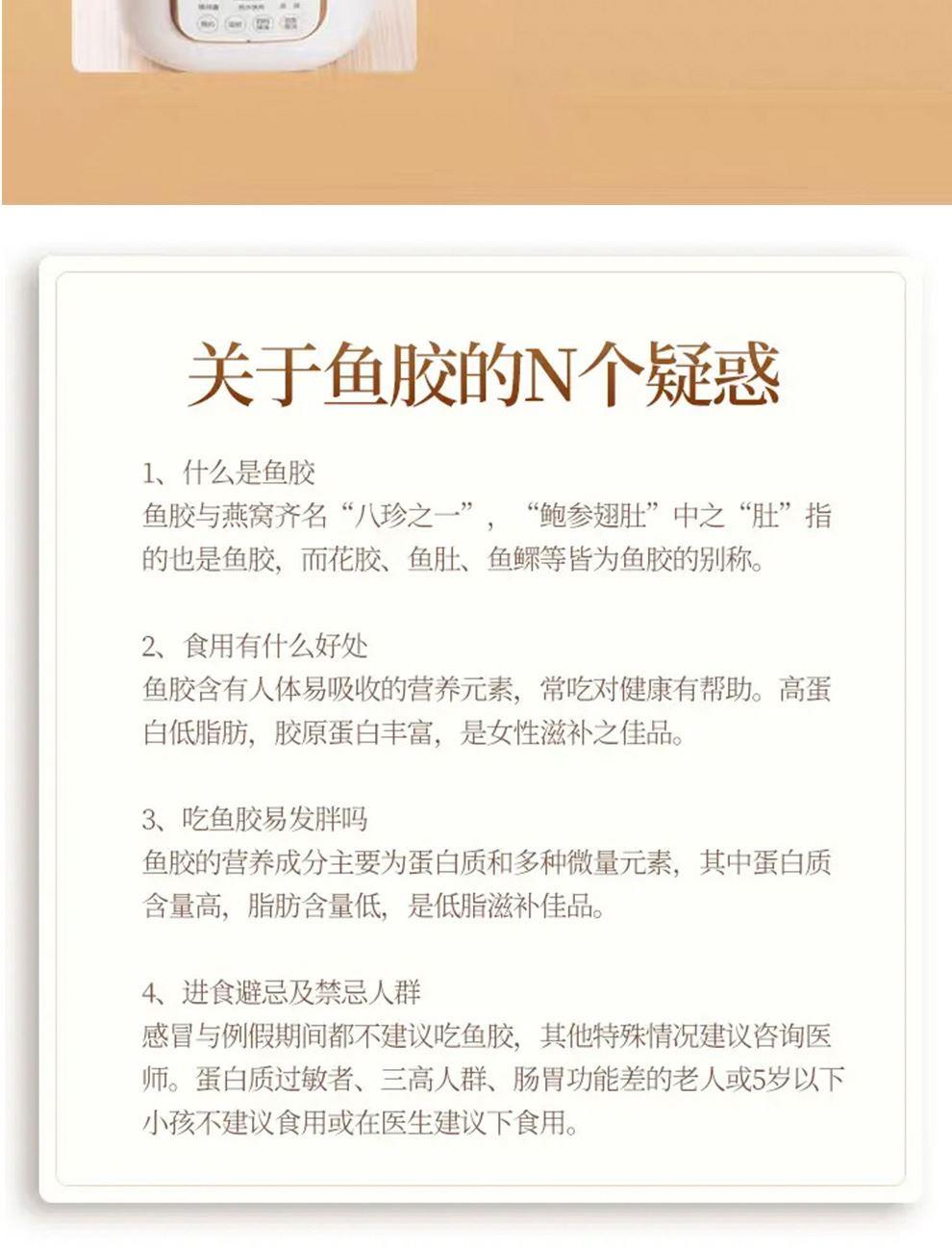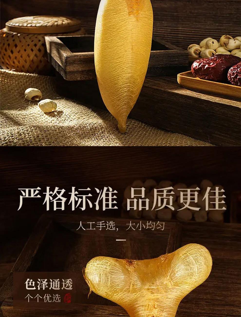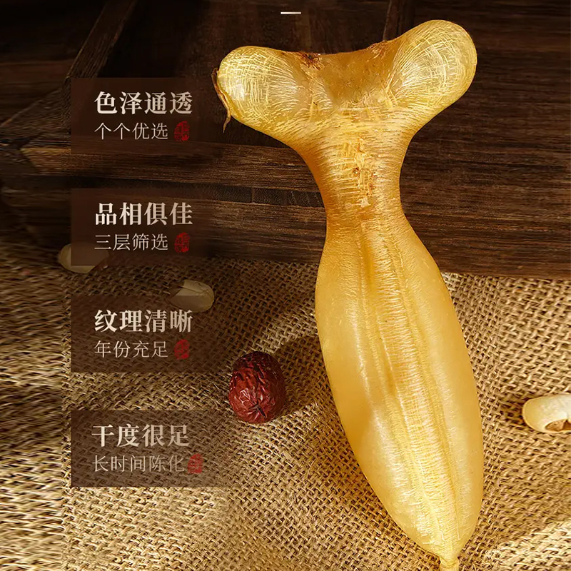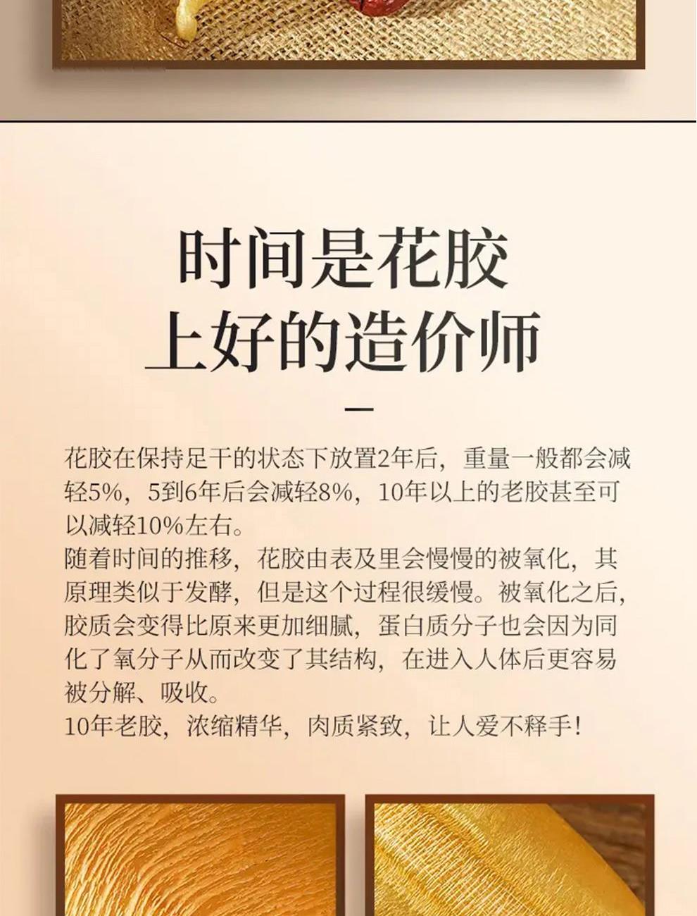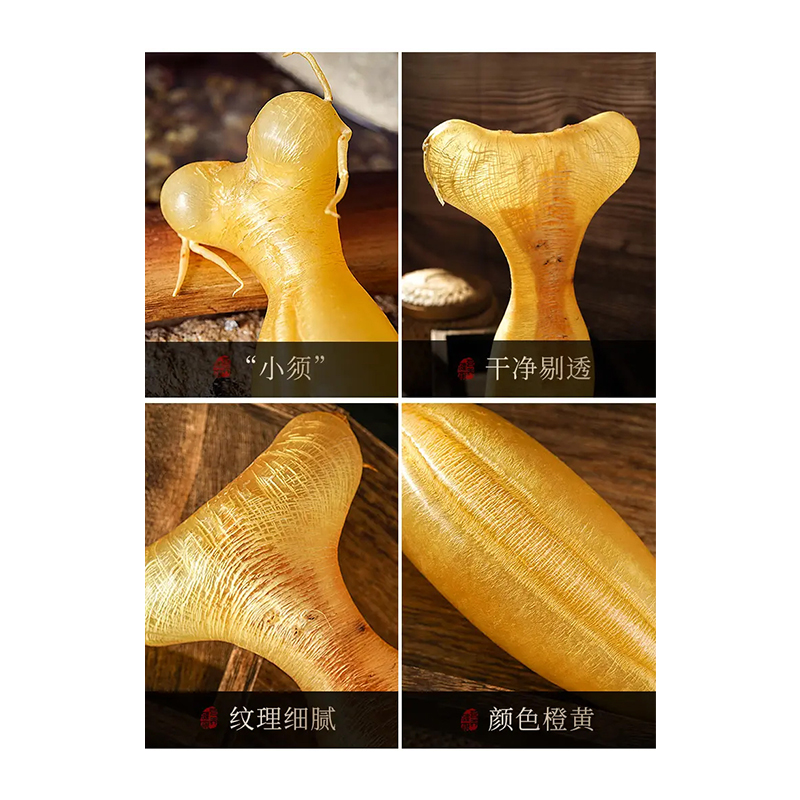 规格:50克 卖点: - 营养积累:随着年份的增加,深海蜘蛛胶中的营养成分不断积累。它富含胶原蛋白,年份越久,胶原蛋白的含量和质量越高,这种成分对于保持肌肤弹性、修复身体组织等方面有着显著的功效 - 品质提升:长时间的存放使鱼胶的质地更加细腻,腥味也会随着时间而减弱。经过多年陈化后,蜘蛛胶的口感会更加醇厚、软滑,在烹饪过程中能够更好地吸收汤汁的味道,使其风味更加浓郁。