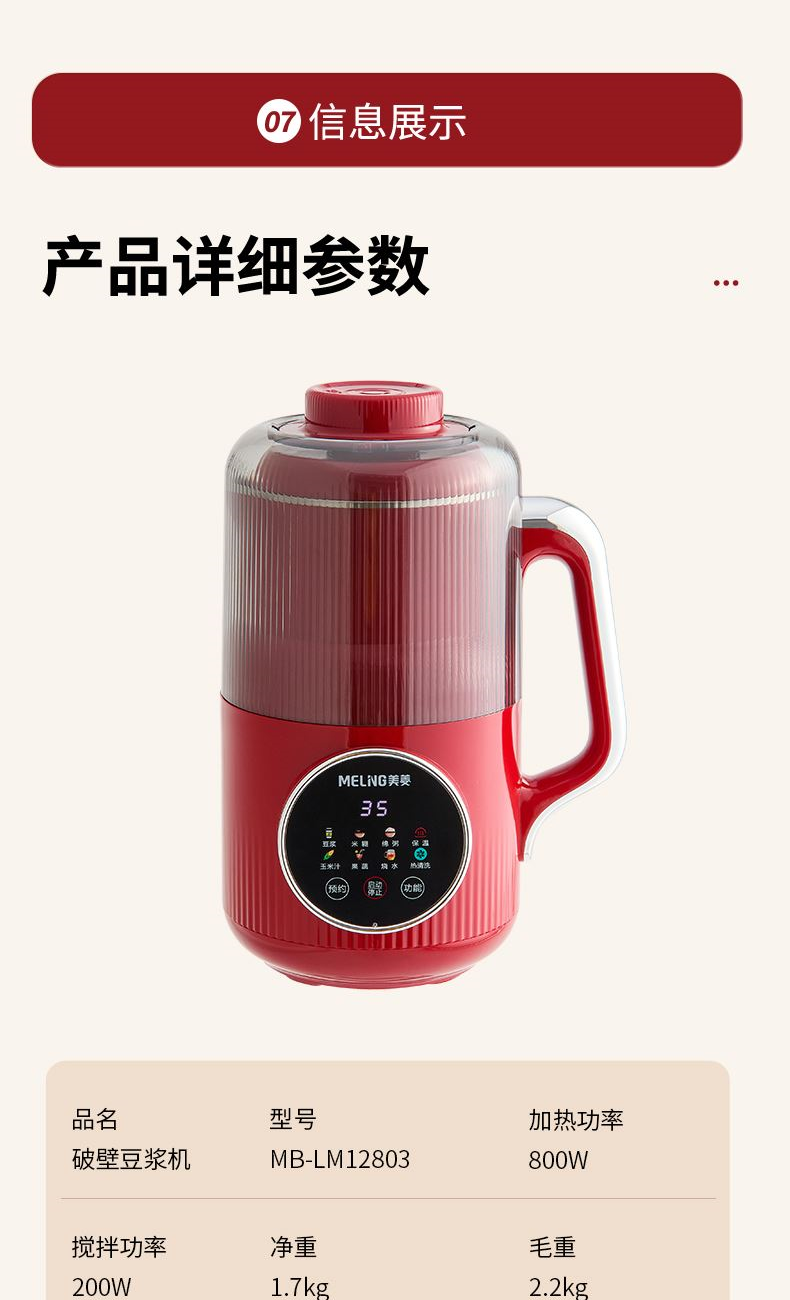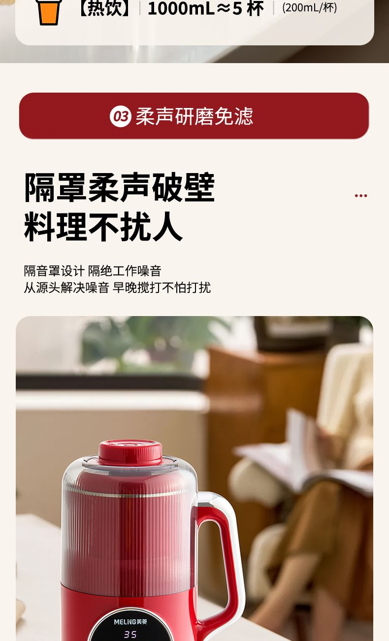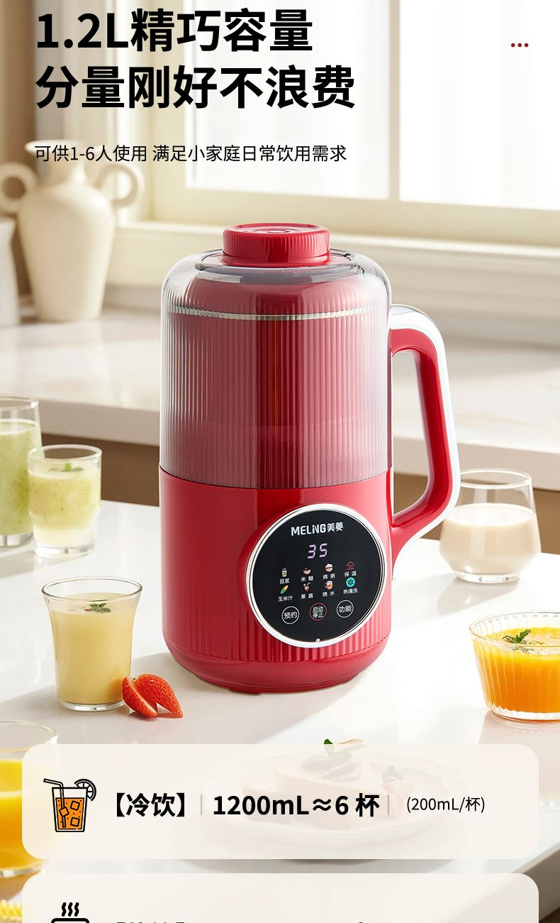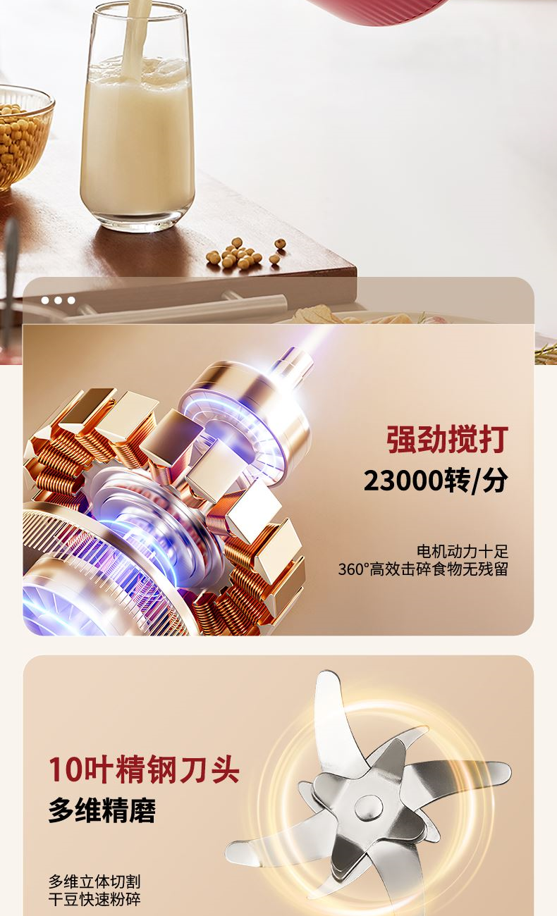 1. 1.2L大容量,可供1-6人使用。. 10叶精钢刀组,细腻无渣。