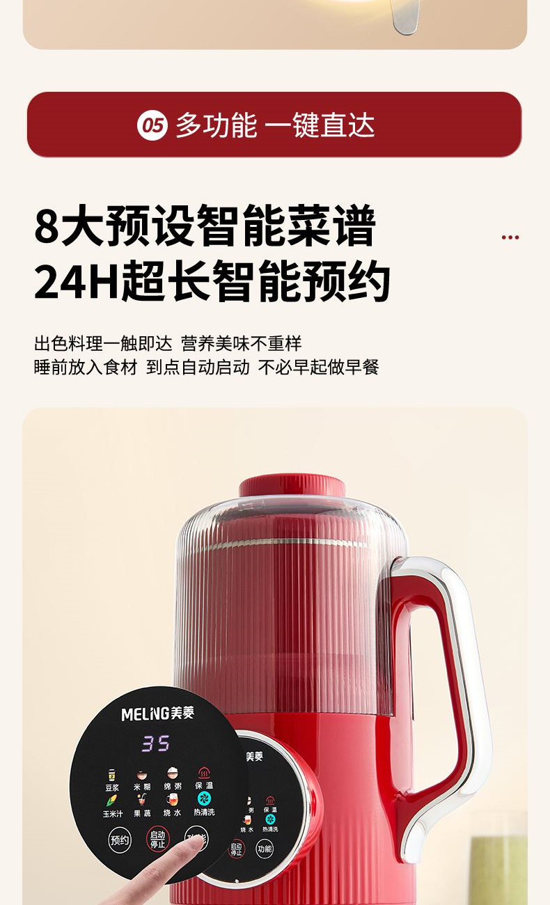 2. 24H小时超长智能预约. 8大预设智能菜谱,营养美味不重样。
