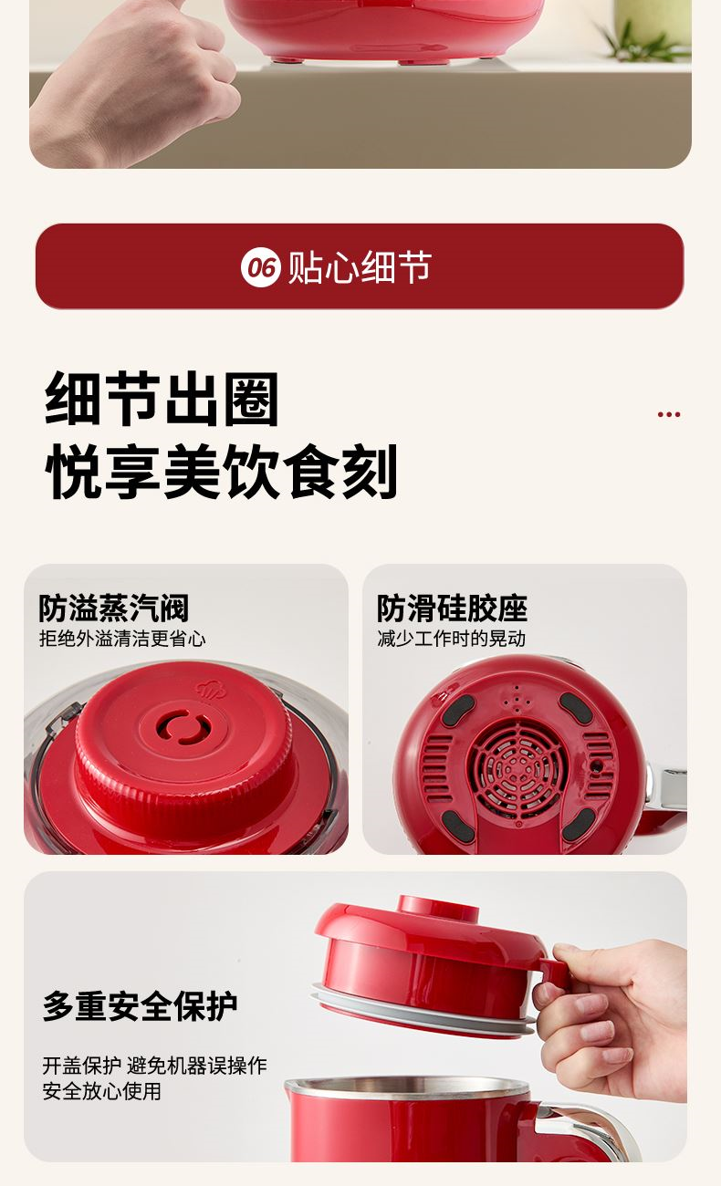 6. 一键清洗,快速便捷。开盖保护,避免机器误操作,安全放心使用。