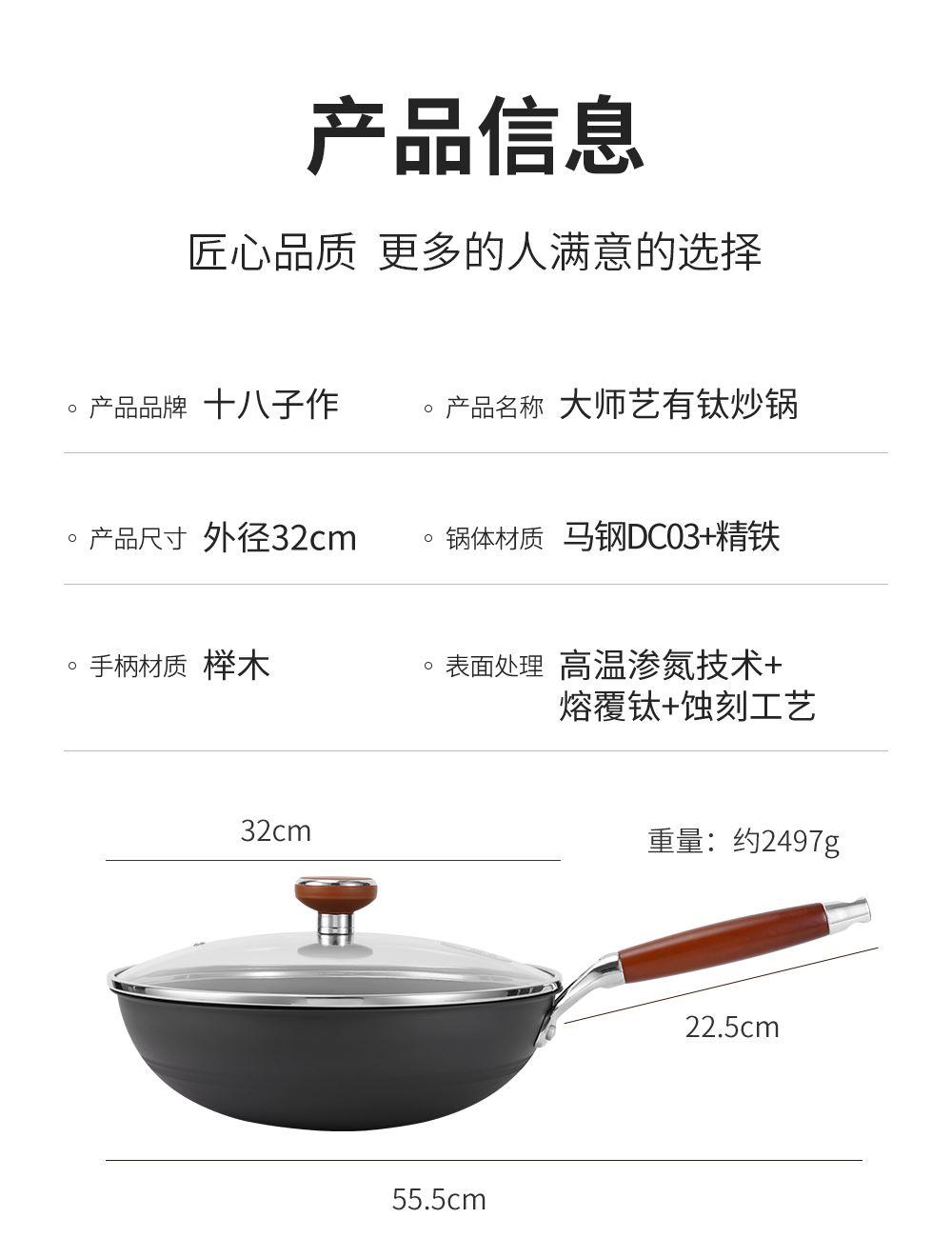 十八子作大师艺有钛不粘炒锅HM-208-32c