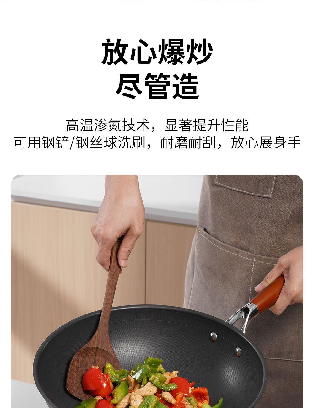 材质:优质精铁,钛晶不粘涂层 规格:32cm 包装:彩盒 重量:3kg 1、钛涂层处理耐高温高温不分解 更健康的不沾锅 2、锅体厚重爆炒炖煮皆宜 3、超高致密木质手柄 历久弥新 4、大盖珠设计 揭盖更稳避免手滑跌落 5、典雅配色,更显质感 6、高拱玻璃盖 不易满溢 闷盖炖煮 蒸汽回流 不用频繁补水 保留汤汁锁住食材本味