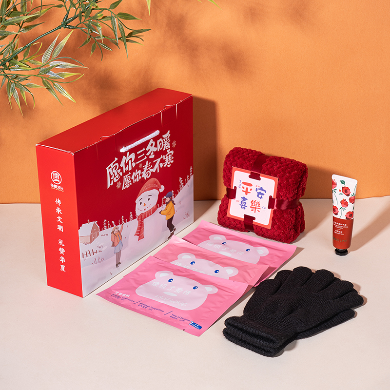 1、这款冬日送温暖主题套装,主题“愿你三冬暖,愿你春不寒”,送给重要的人,身暖心更暖。