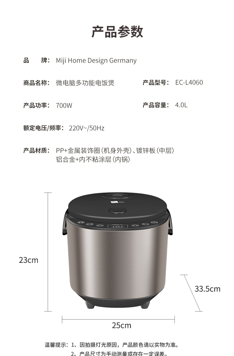 MijiHome米技生活微电脑多功能电饭煲EC-L4060