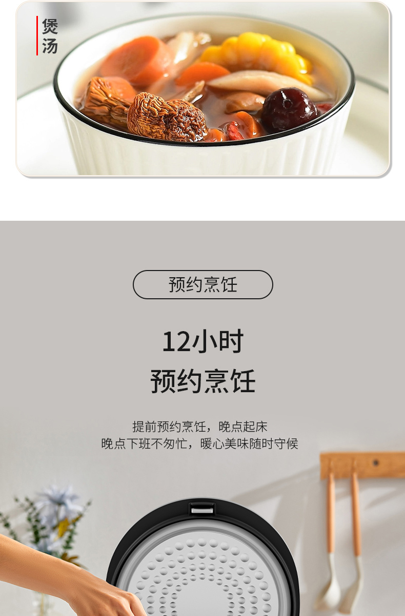 支持12小时预约烹饪。