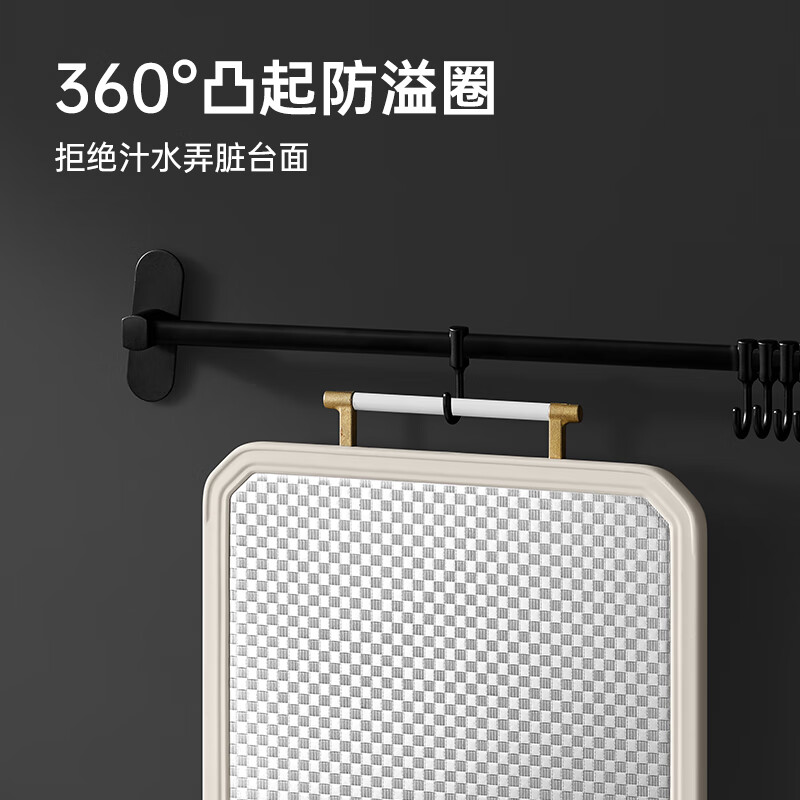 材质:PP+不锈钢+TPR+合金 规格:38*27*2.4cm 重量:2.1kg 特点:1、双面菜板,开启健康生活。2、双面暖心设计,生熟分切防串味。3、四层加厚设计经久耐用。4、不锈钢把手,悬挂收纳省空间。