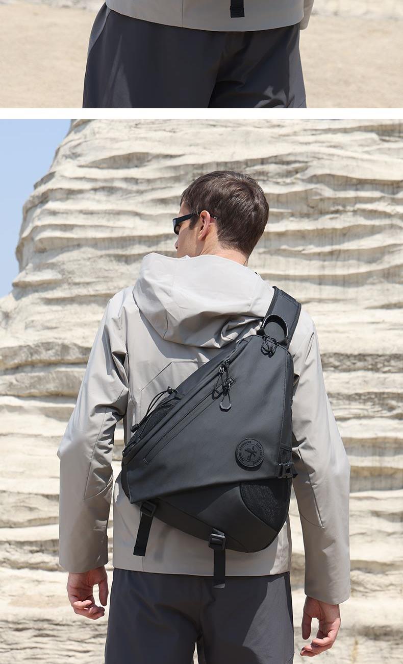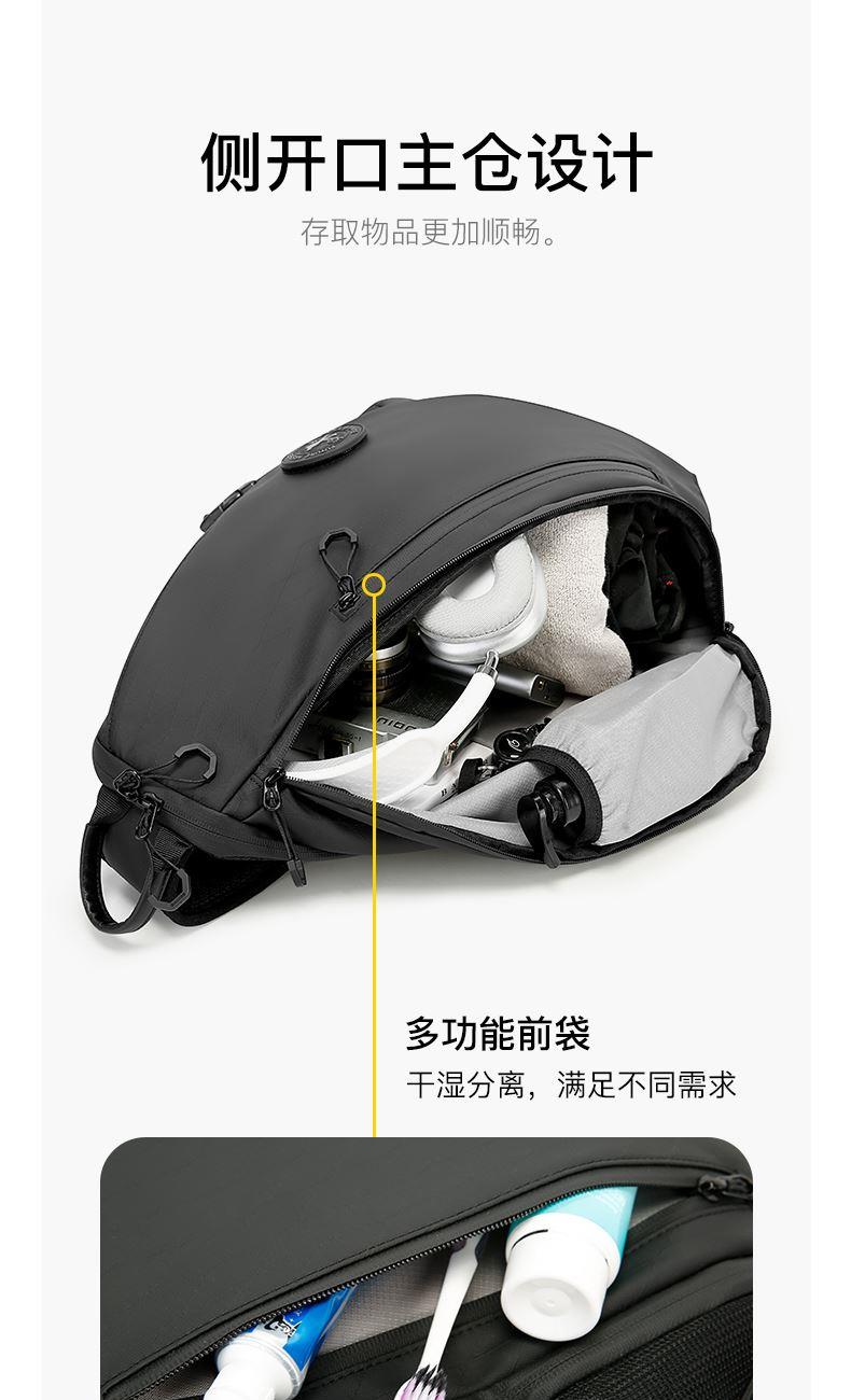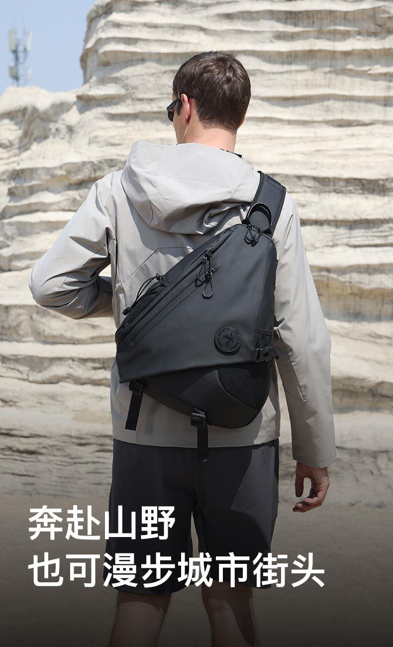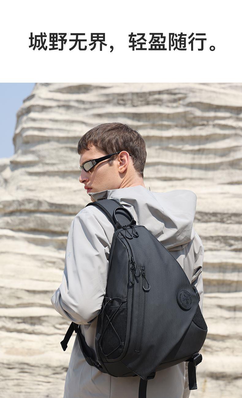 多口袋结构小体积大容量 合理分区更有内涵 侧开口主仓设计 灵活外挂位 内外防护双重叠加 城野无界轻盈随行 弹力钥匙扣 魔术贴logo 弹力调节绳 YKK拉链