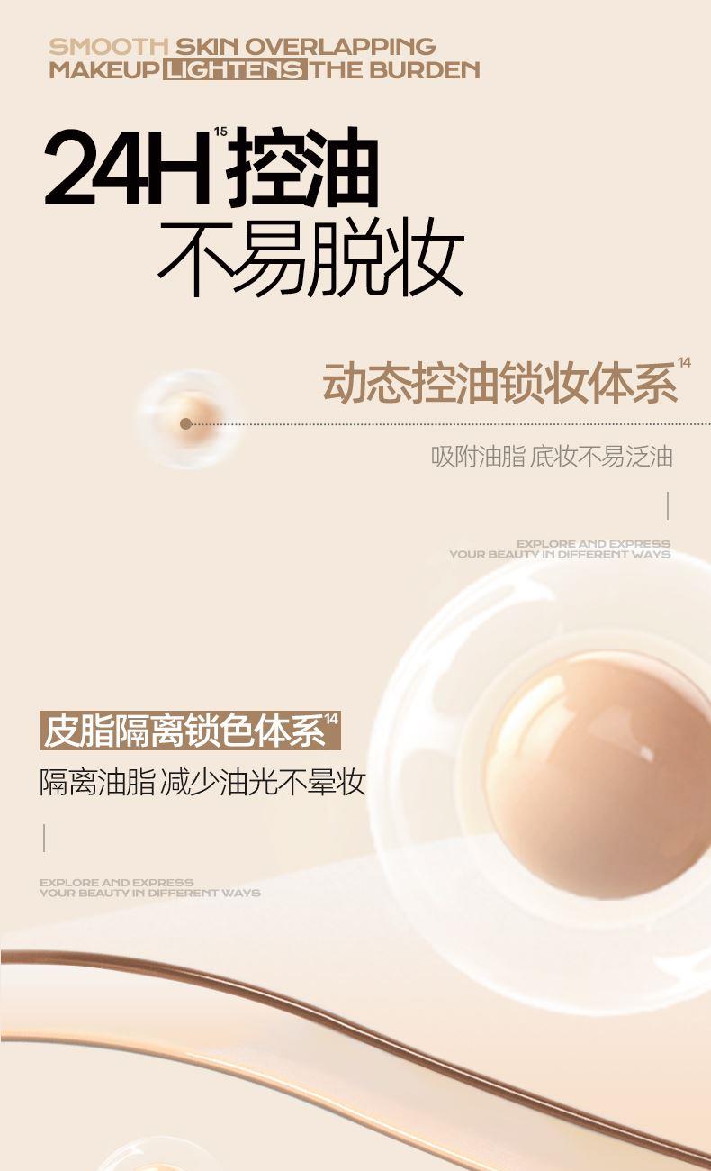 1、持妆PRO——长效贴肤更持妆,日落妆不落 水凝柔纱科技(三乙氧基辛基硅氧烷处理亲水气流粉体)亲水气流粉体经过柔纱,外衣处理,为肌肤带来水润感,上脸贴牢肌肤,柔软亲肤,底妆舒爽不掉线,妆随容动,透气不闷痘,保证肌肤呼吸 2、养肤PRO——保湿修护抗蓝光,贴妆更养肤 多重保湿、双重修护、抗蓝光,守护肌肤,底妆水润轻透不浮“燥” 护肤级保湿精粹9重玻尿酸、银耳子提取物、椰子果提取物、依克多因)——多重保湿成分,保湿不拔干,柔润不卡纹 双重活性修护精萃酵母发酵滤液、深海蓝藻蛋白——保持肌肤弹润,修护肌肤,有效抗老 聚繖岩蔷薇——抵御蓝光,强韧肌底,上妆不刺激,保持底妆鲜活亮泽 3、抗氧PRO——多重抗氧更透亮,天黑妆不黑 双重抗氧成分,虾青素、麦角硫因——避免底妆氧化暗沉,长时间带妆也不易暗沉发黄,深入肌底焕亮肌肤,呵护底妆不暗沉 4、轻透PRO——自然轻薄更亲肤,透气不闷痘 MOVING FILM动态透气盾(柔软树脂膜)——超柔软、耐摩擦、更透气,轻透服帖,如动态保护盾一般,根据肌肤动态调整自身状态,保持底妆舒爽不掉线,时刻守护底妆妆态。