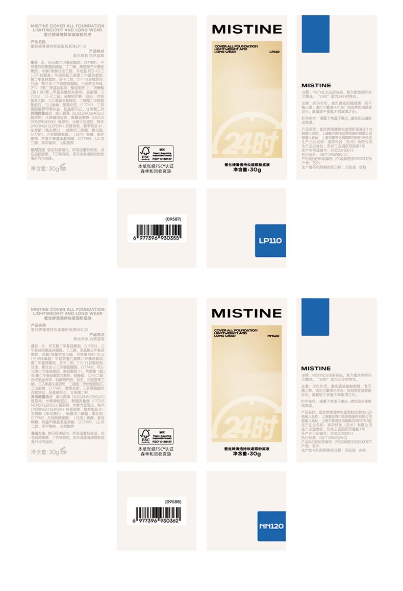 • 蜜丝婷清透持妆遮瑕蓝盾粉底液LP110白皙粉调色