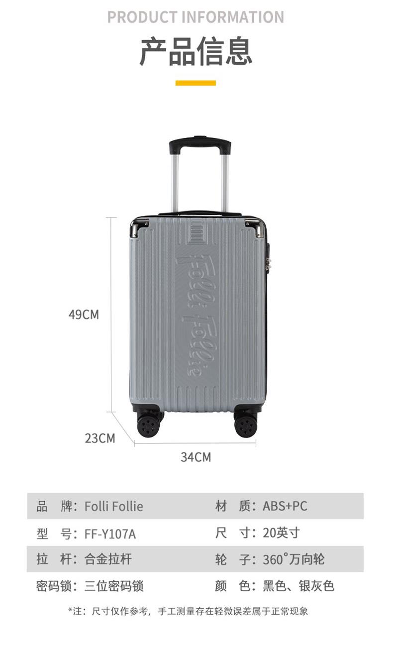 FolliFollie竖条纹拉杆箱FF-Y107A银灰色