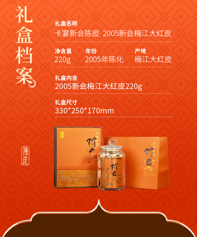 卡宴新会陈皮2005新会梅江大红皮220g