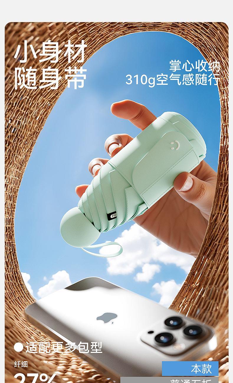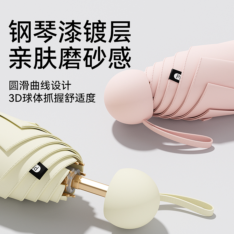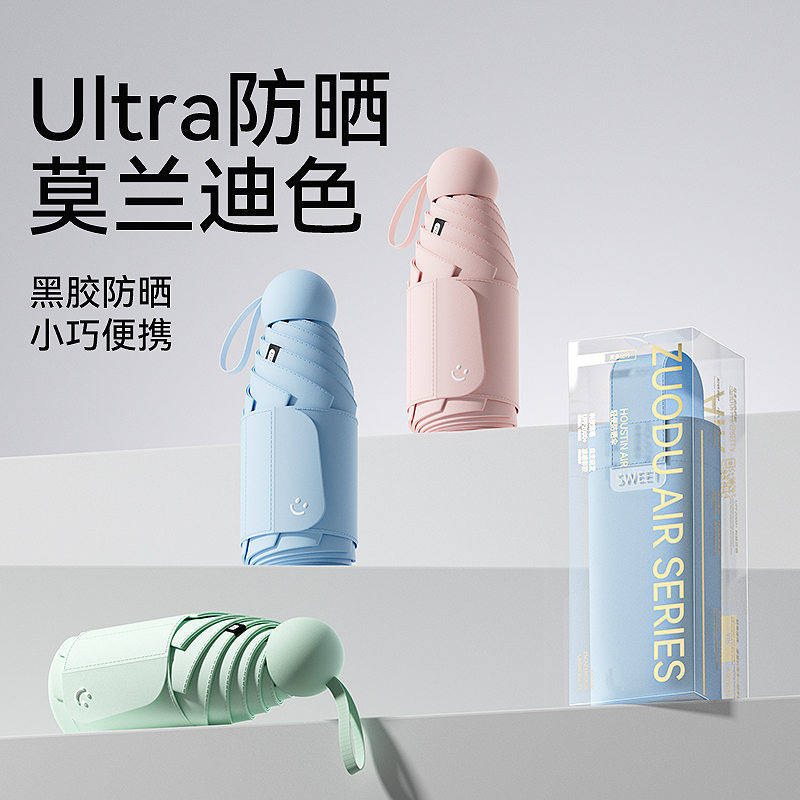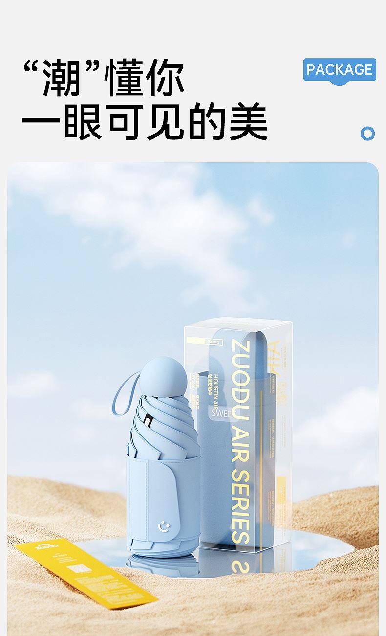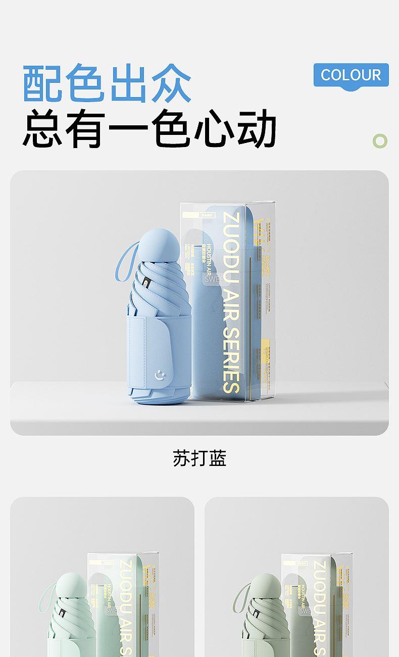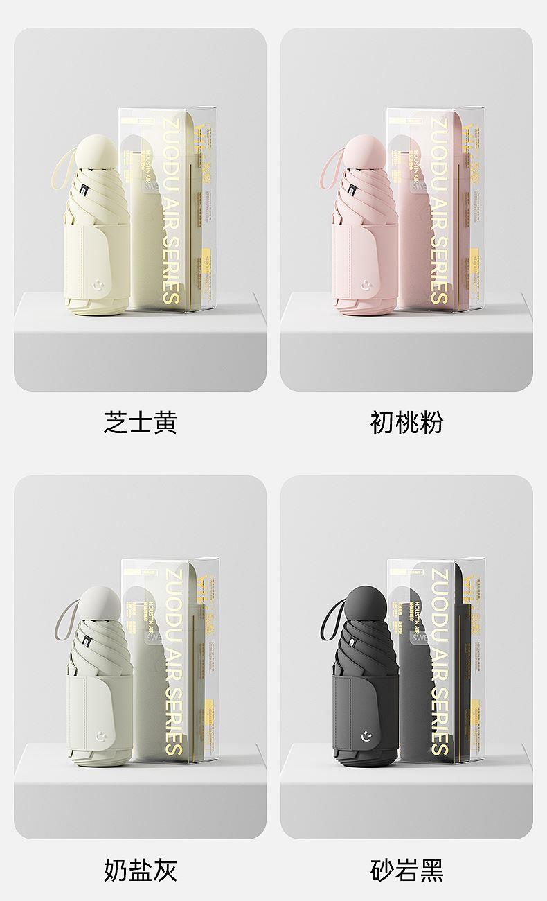 左都ZD2570圆球五折8骨金色铝架口袋胶囊防晒遮阳伞
