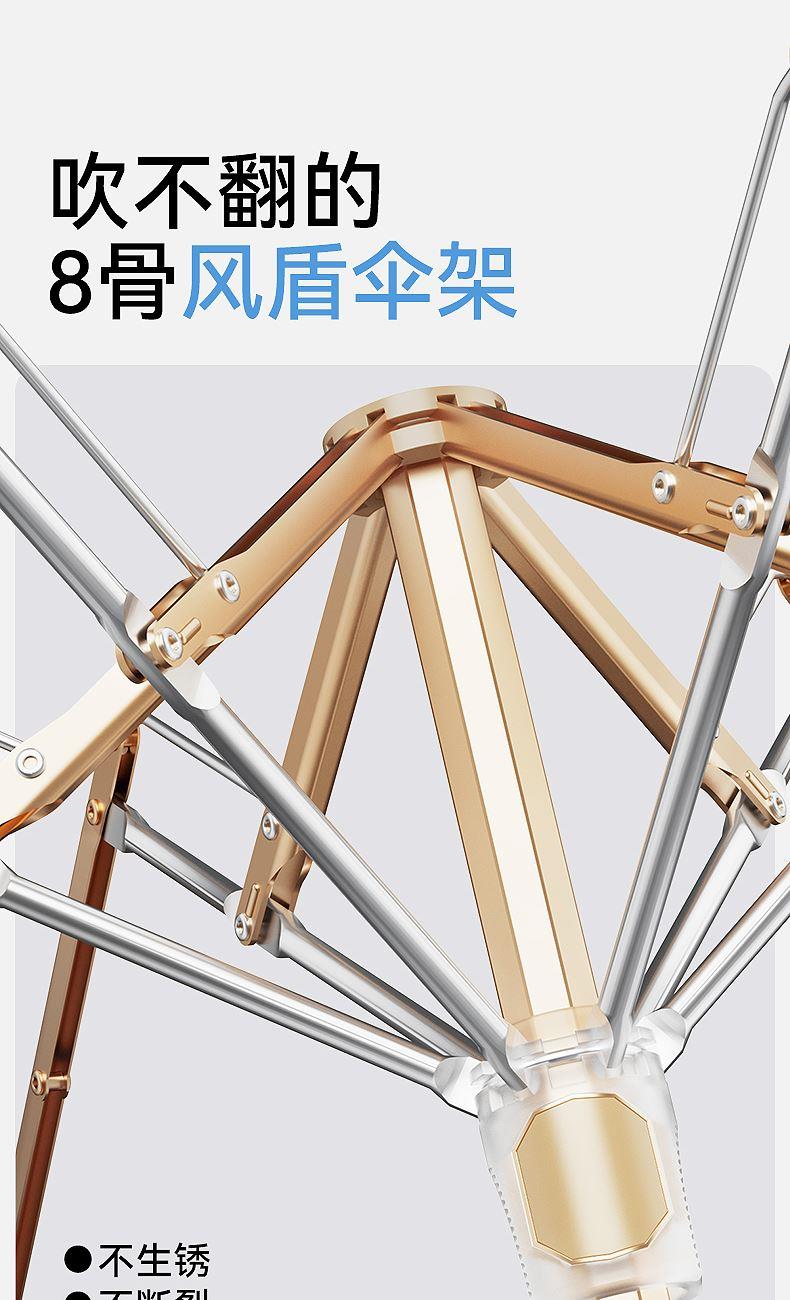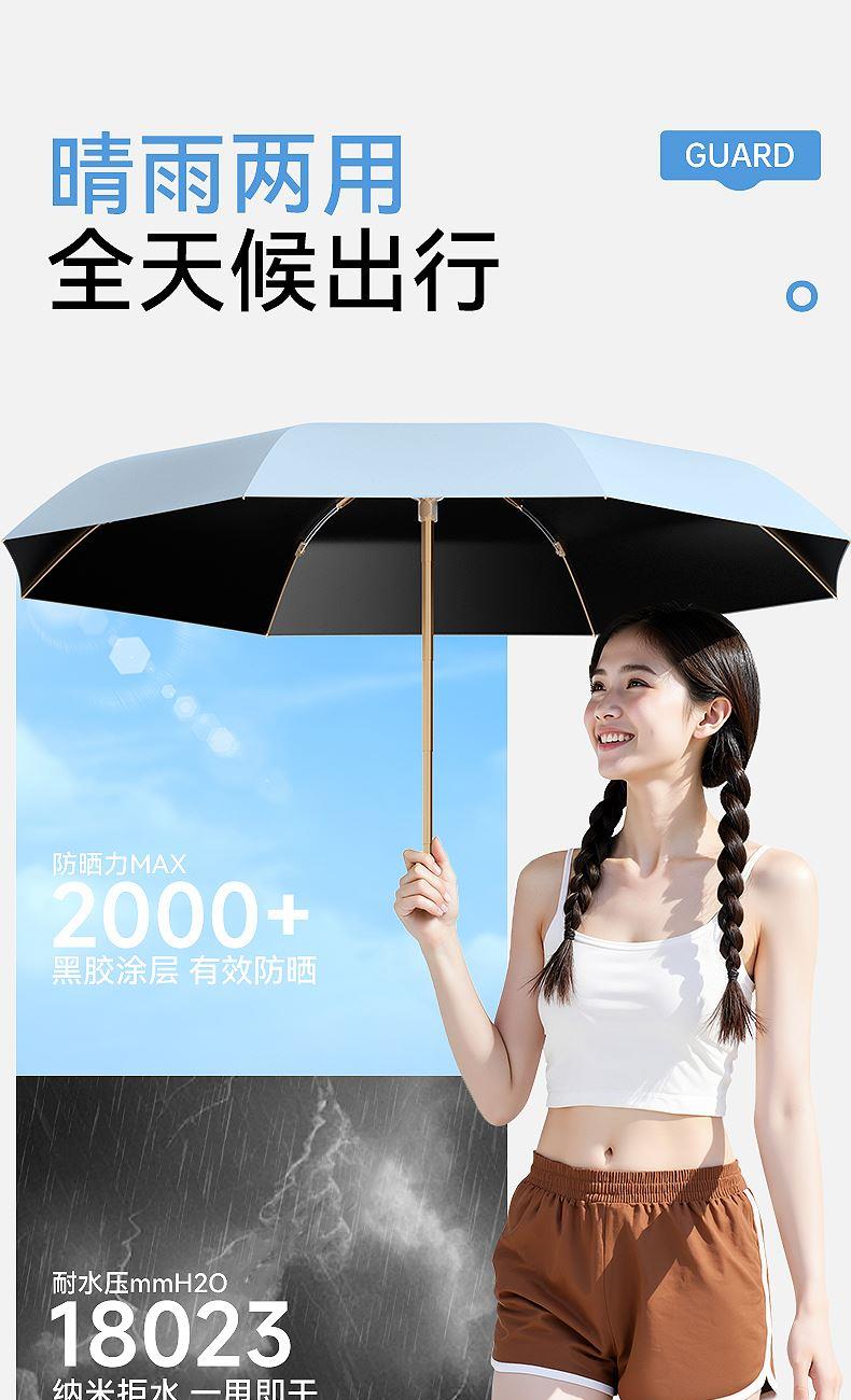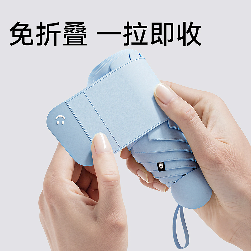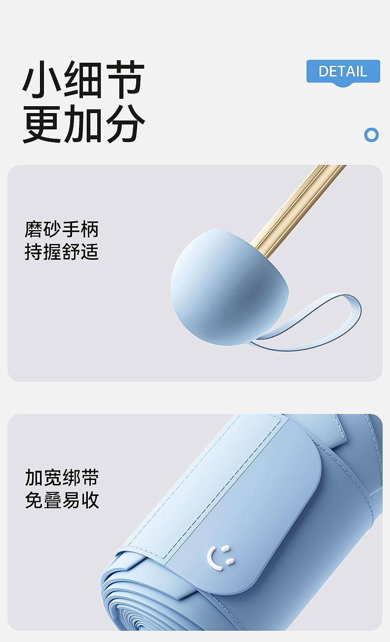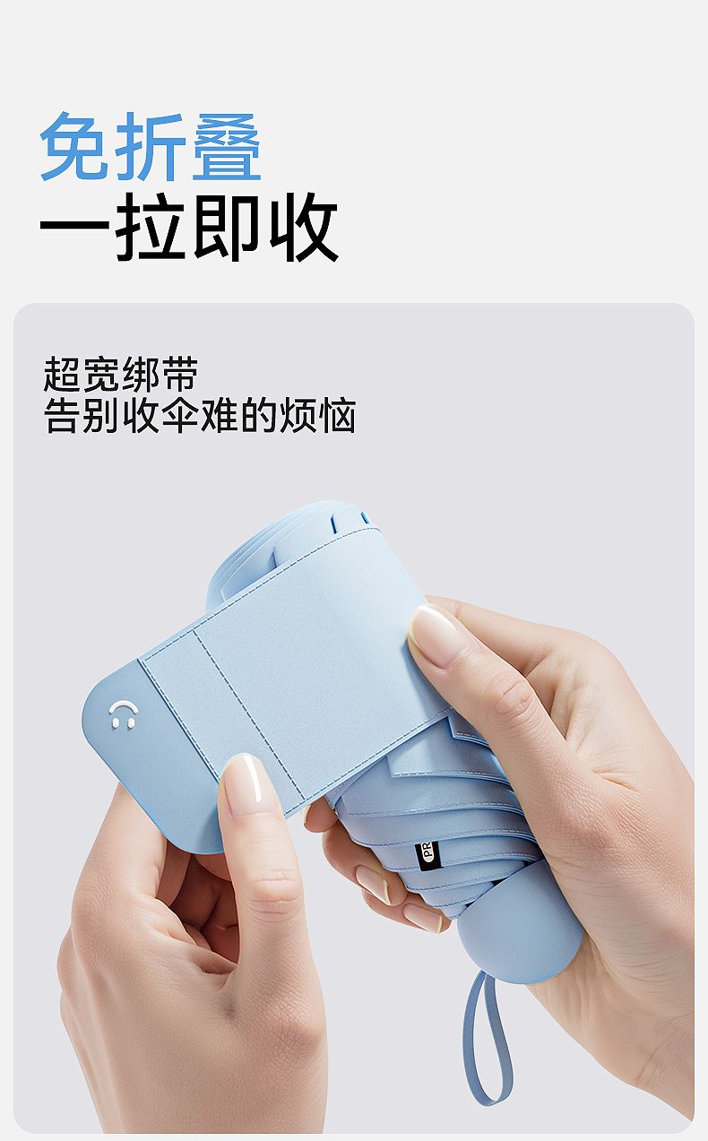 左都ZD2570圆球五折8骨金色铝架口袋胶囊防晒遮阳伞