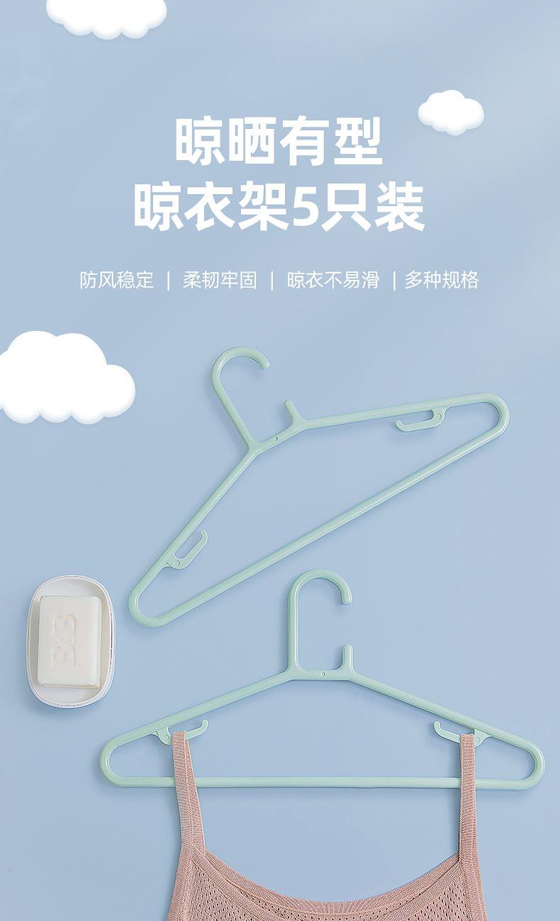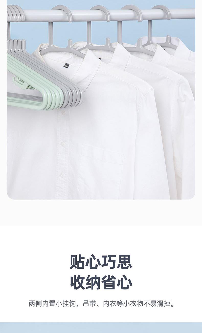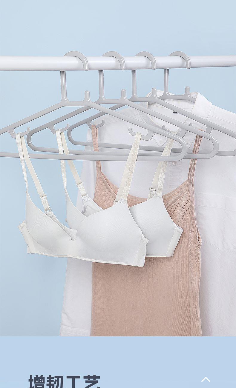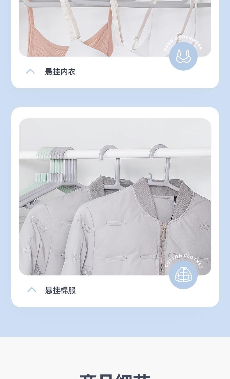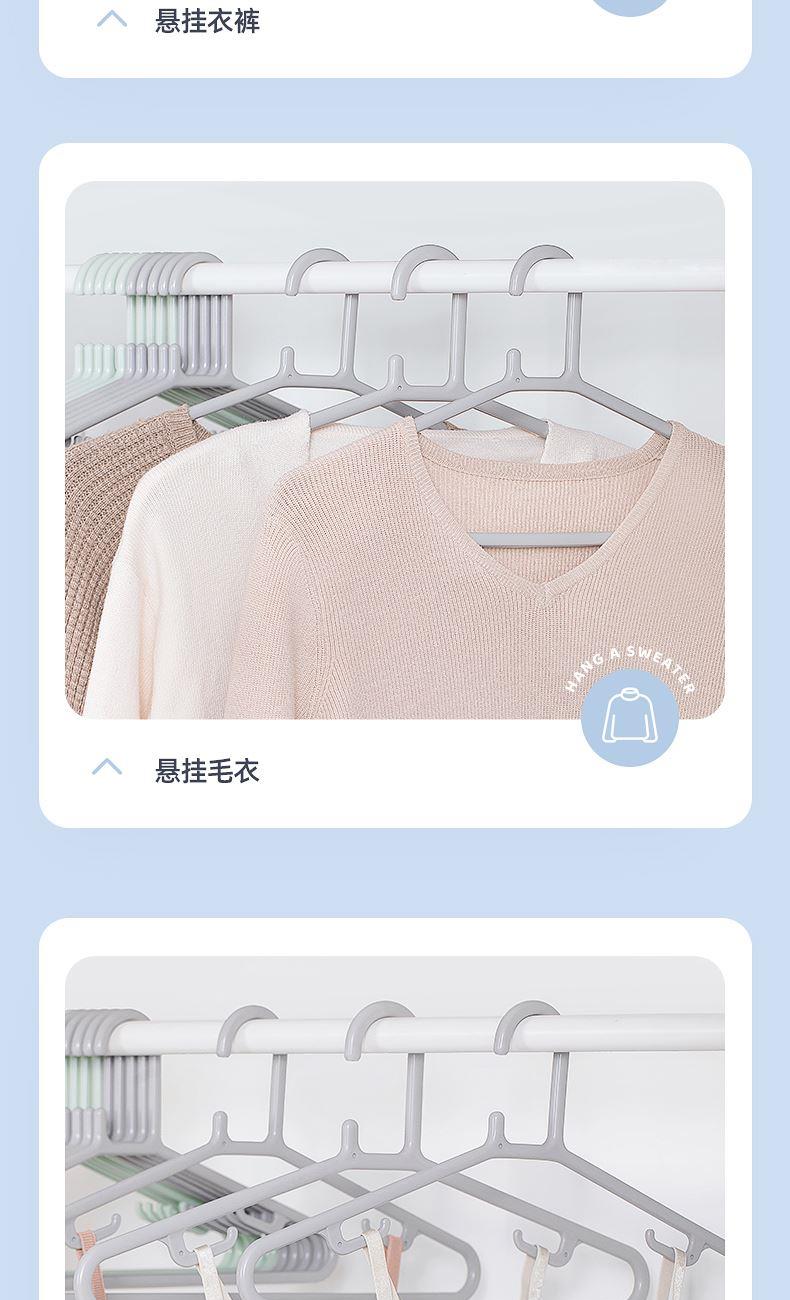 产品尺寸:46*22.2*0.9cm 产品材质:PP 单体克重:381.6g 外箱尺寸:58.5*47*61.5cm 包装方式:5PCS/illustration card 颜色:灰色、绿色 真材实料,柔韧经用 微弧肩线,立体撑衣 增韧工艺,承重出色