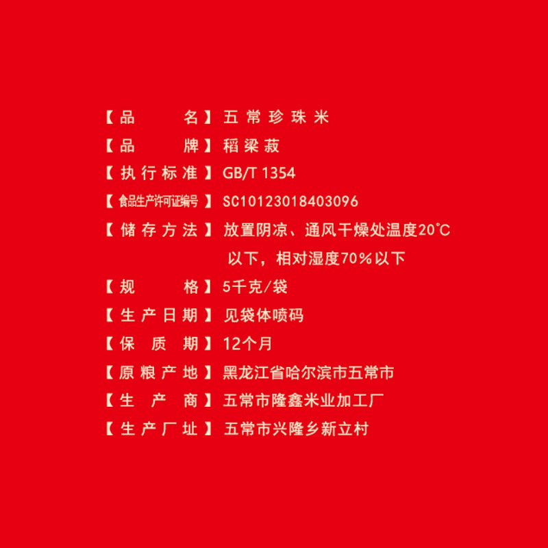 稻梁菽五常珍珠米袋装10斤