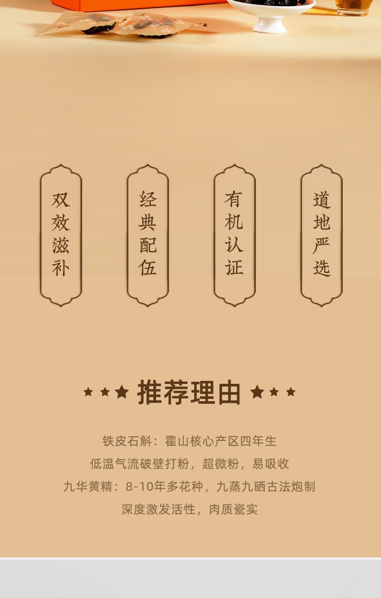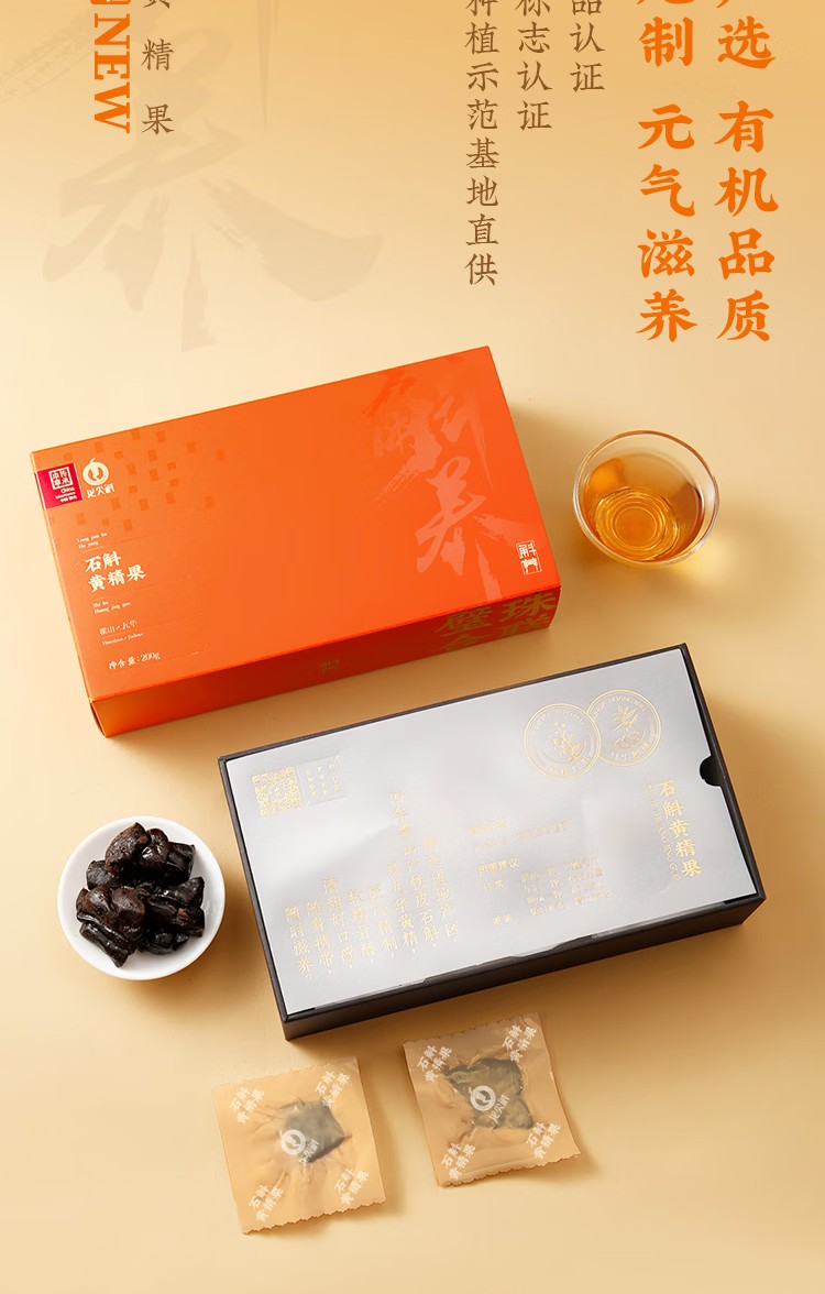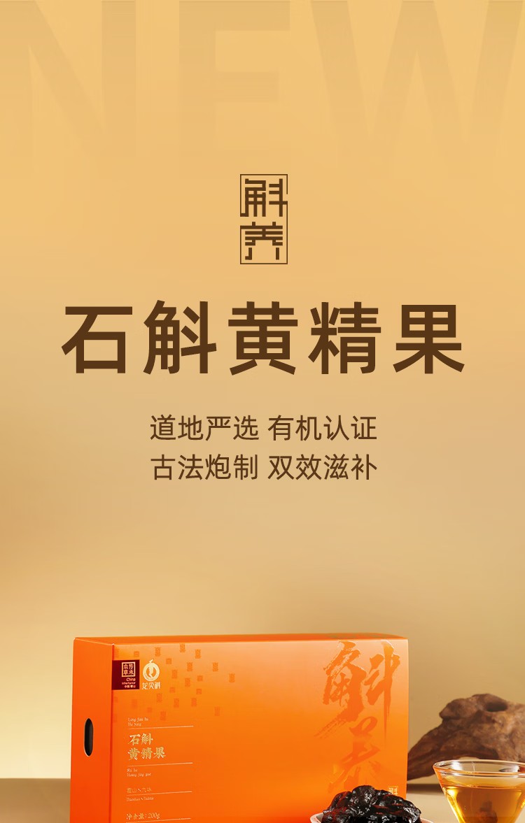 【石斛黄精果】 规格:200g 20盒/箱 保质期:12个月 严选四年生霍山铁皮石斛粉 低温破壁打粉,营养不流失 超微粉 精选8--10年九华多花黄精 柴火明火,九蒸九晒古法工艺
