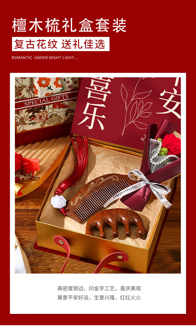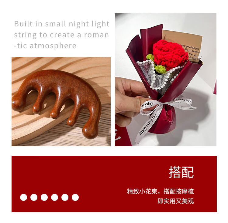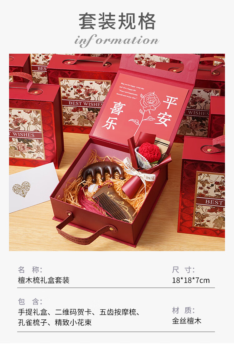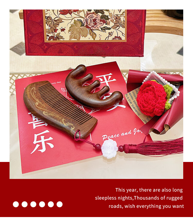 编码:W4012 内配:小月檀木梳+五指檀木梳+针织小花束