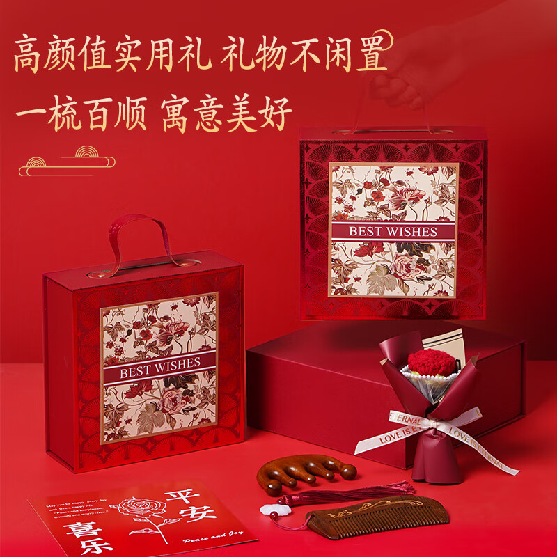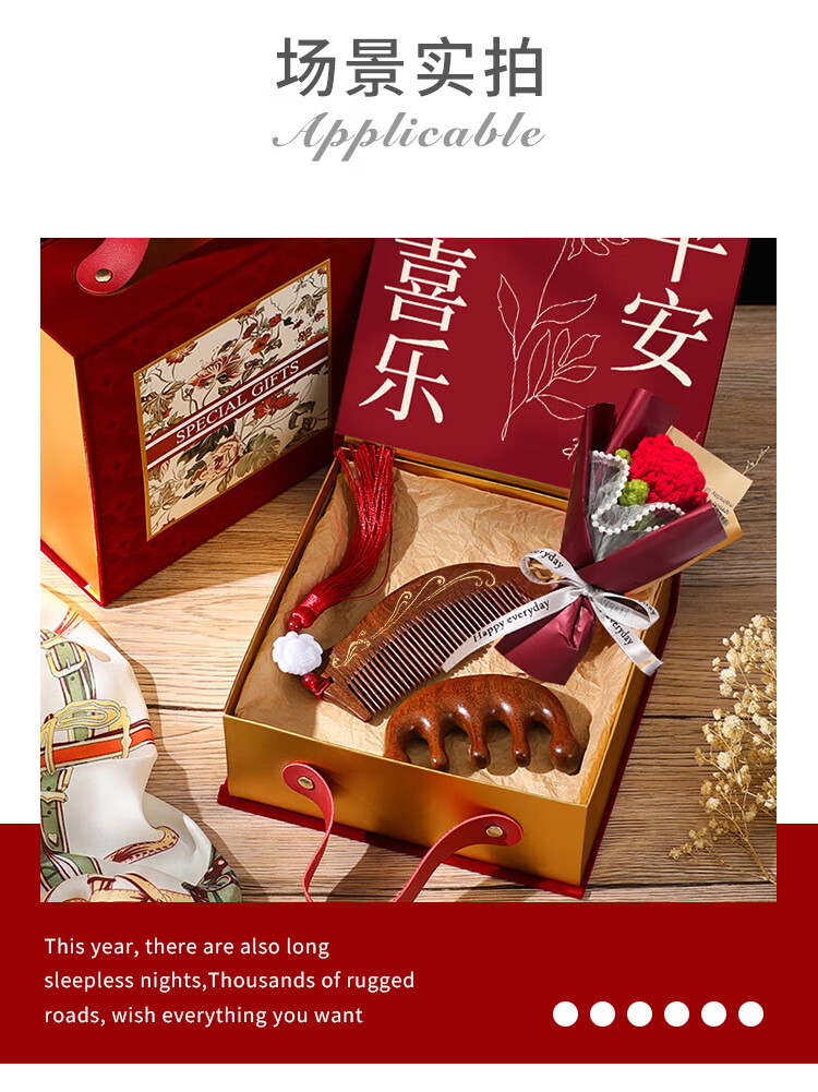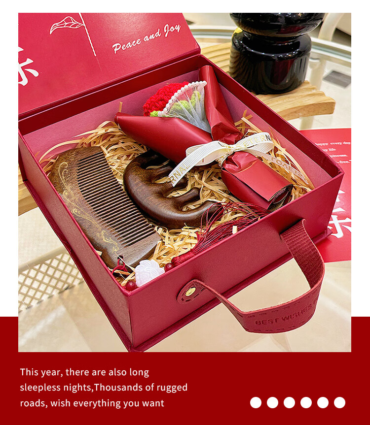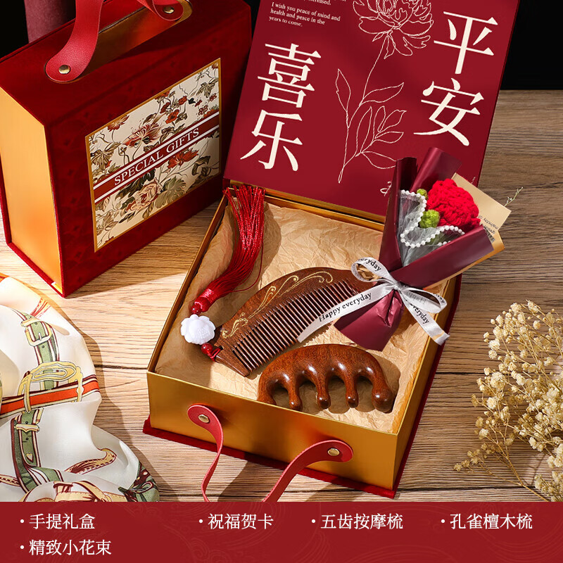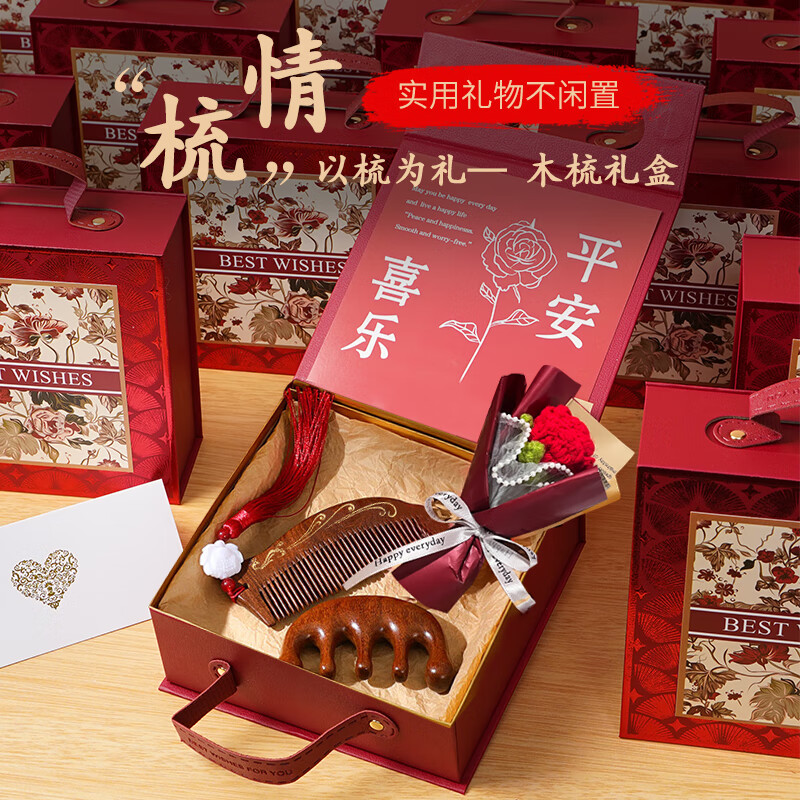 编码:W4012 内配:小月檀木梳+五指檀木梳+针织小花束