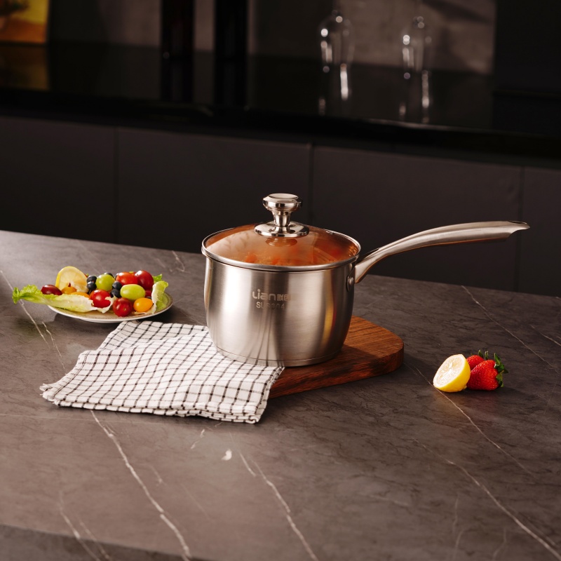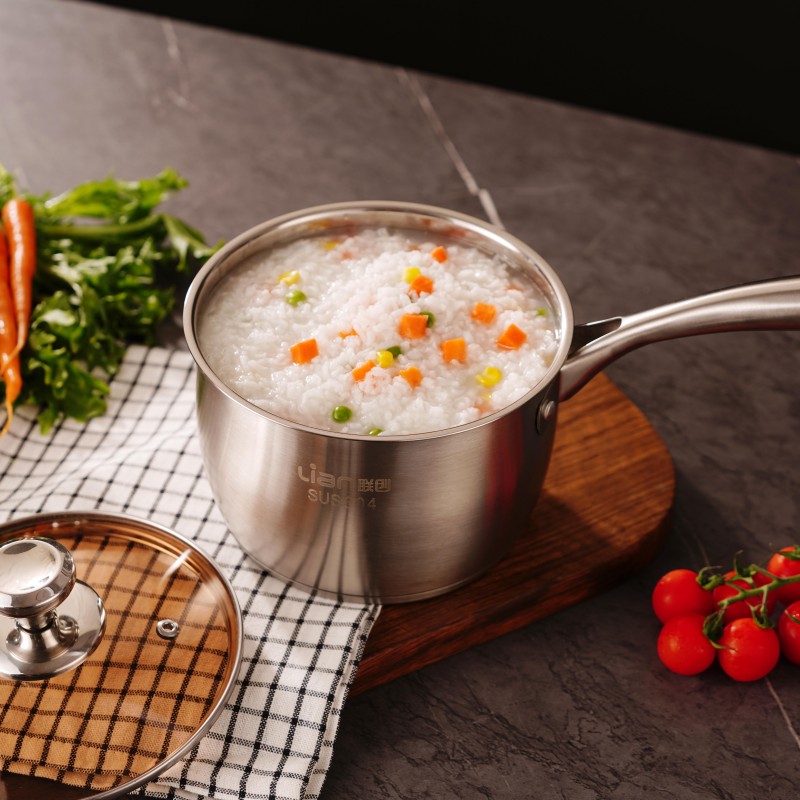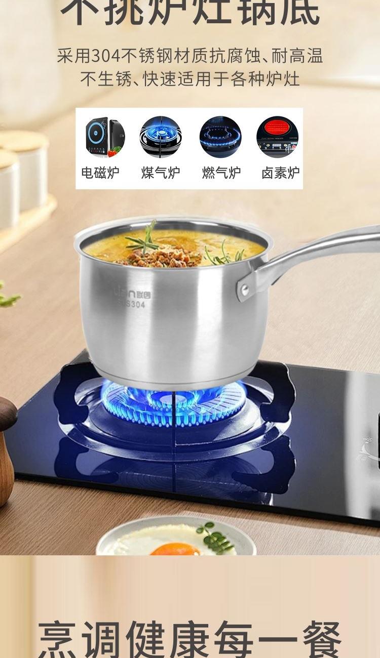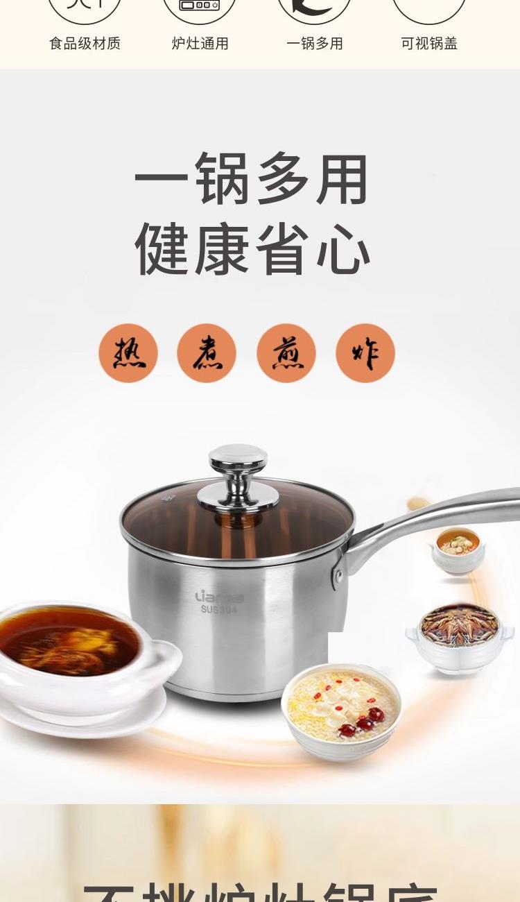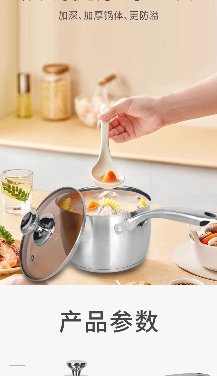 口径:16cm 产品净重:0.71kg 产品毛重:1.15kg 整箱毛重:24.5kg 产品尺寸:200 ⅹ 135 ⅹ 350mm 彩盒尺寸:361 ⅹ 136 ⅹ 150mm 外箱尺寸:735 ⅹ 430 ⅹ 730mm 条形码:6978519510034 材质:304不锈钢、钢化玻璃 1、采用304不锈钢材质抗腐蚀,耐高温,不生锈; 2、宝宝辅食轻松煮,一锅在手健康省心; 3、加长手柄设计倾倒轻松不滴漏; 4、304不锈钢,不挑炉灶锅底,节能省时烹饪快速适用于燃气灶、电磁炉、电陶炉等热源; 5、加深加厚锅体更防溢。