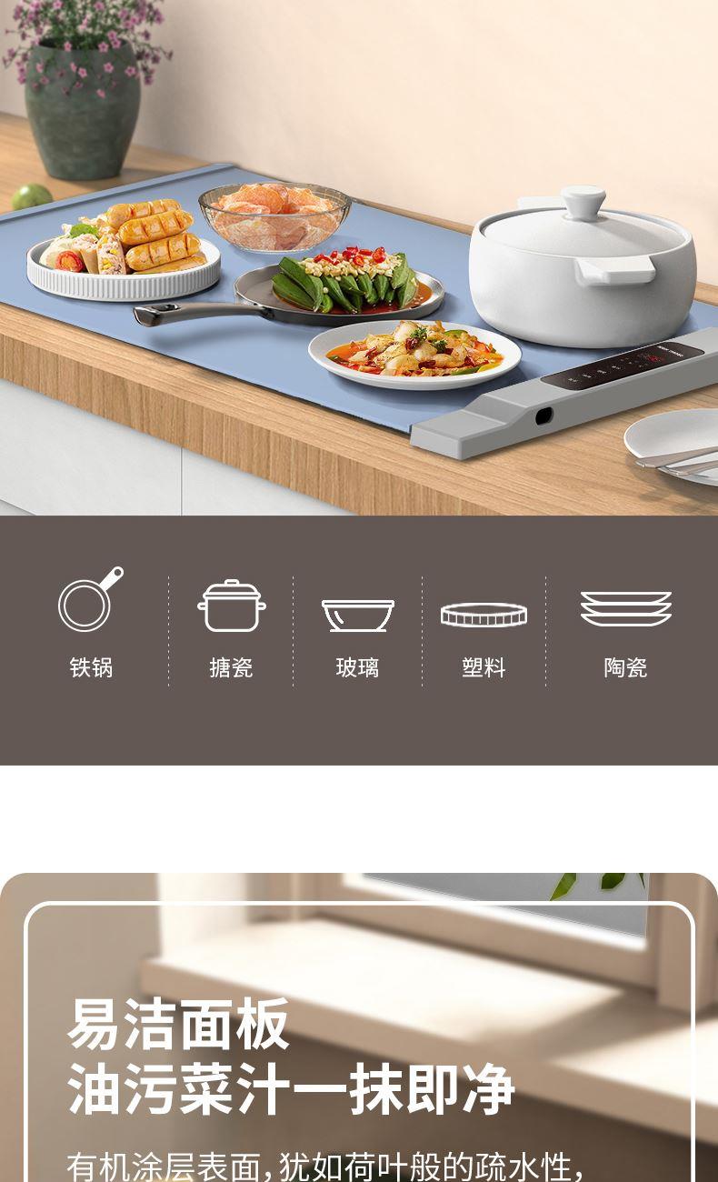 档位:6档 额定电压:220V 功率:300W 产品重量:1.3 KG 产品尺寸:646*430*28mm 产品材质:塑料,硅胶 可多个并联组合使用 六档调温设置,60-120度控温,掌握食物理想温度 卷折式收纳,不占空间