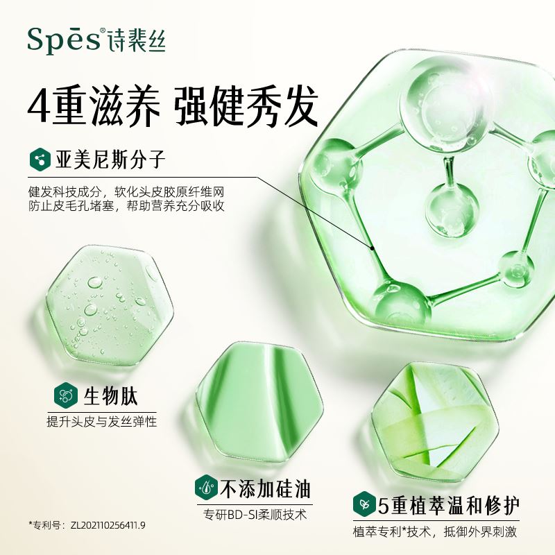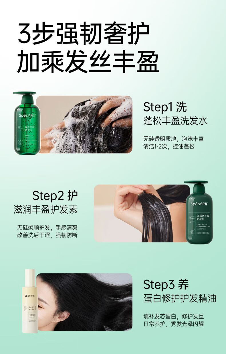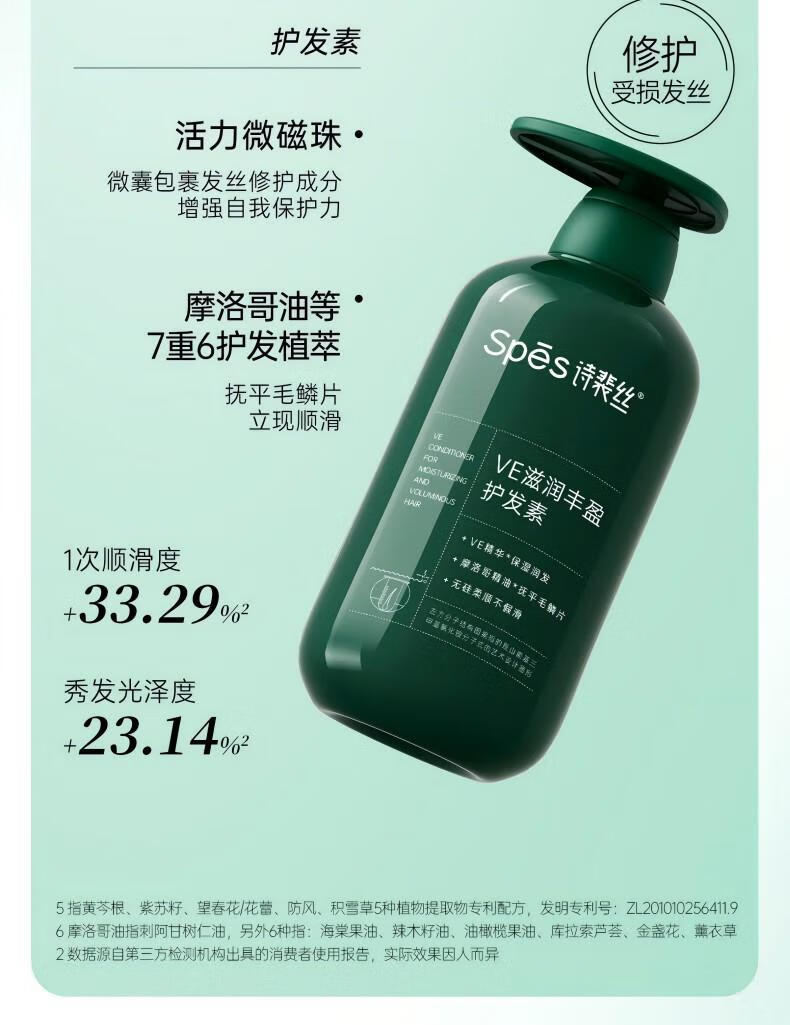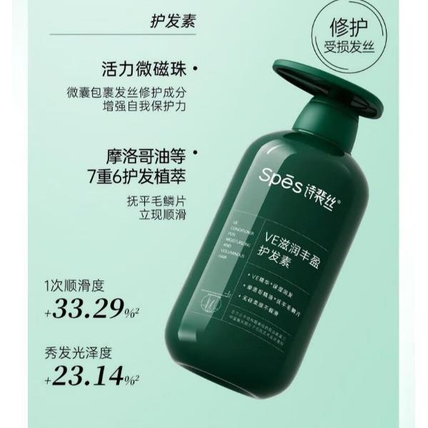 Spēs VE滋润丰盈护发素500ml 产品卖点: 无硅柔顺护发,手感清爽 改善洗后干涩,强韧防断