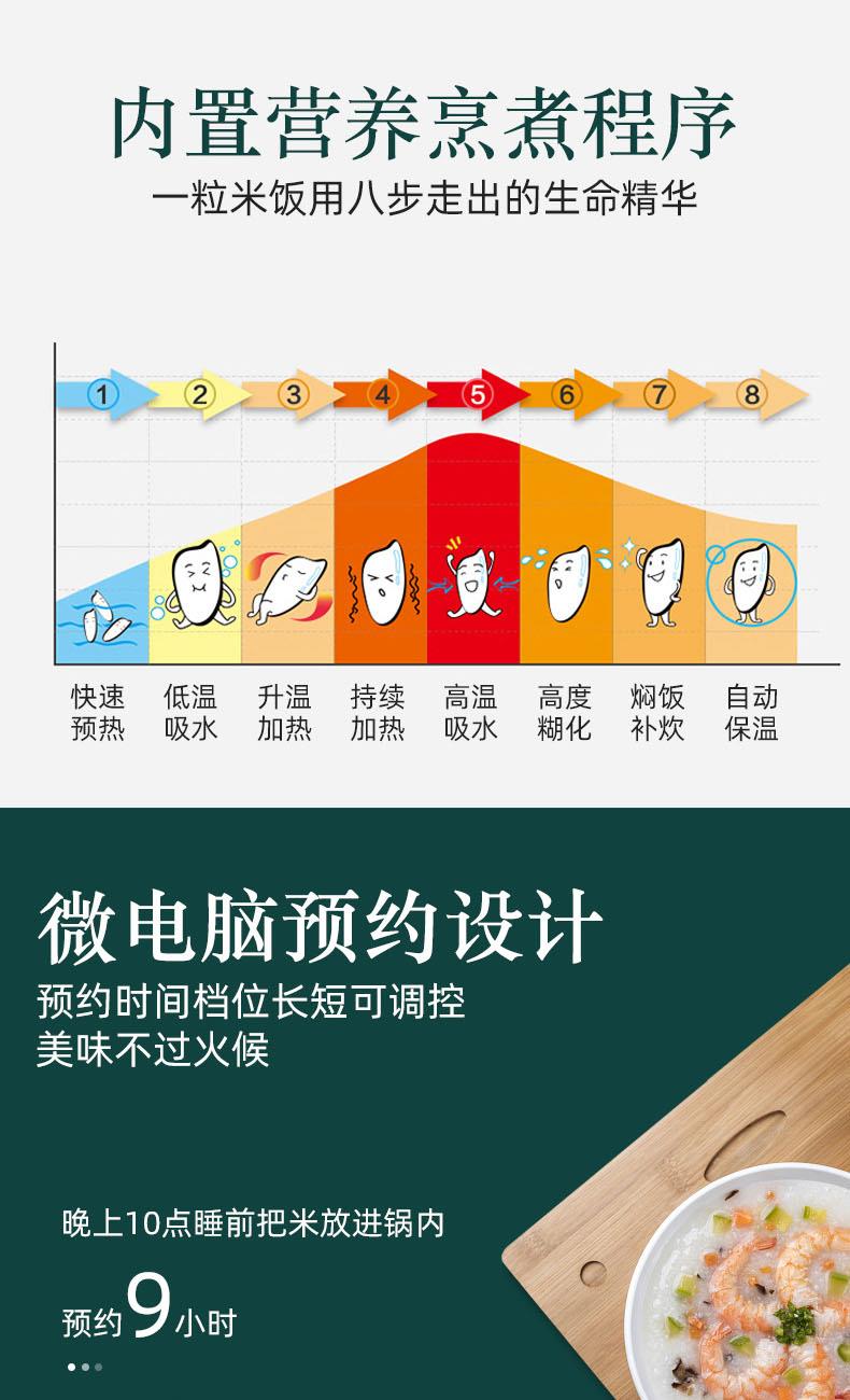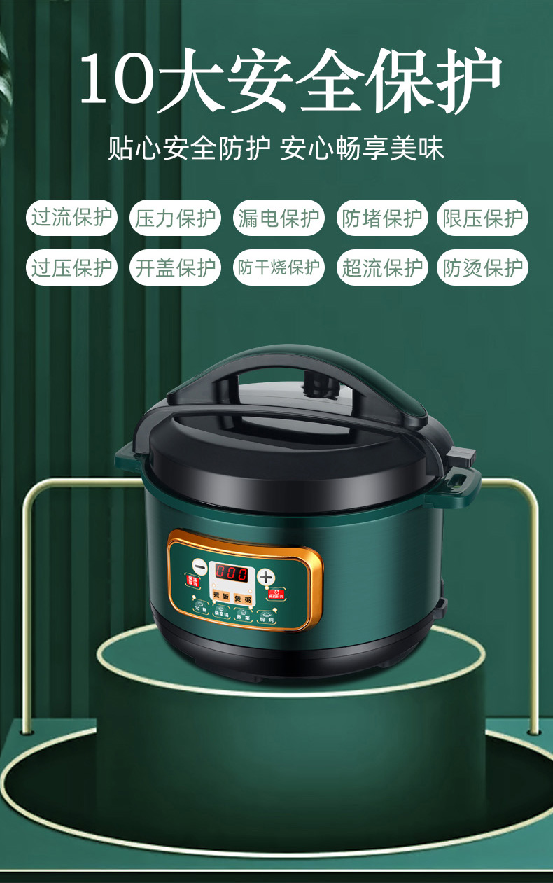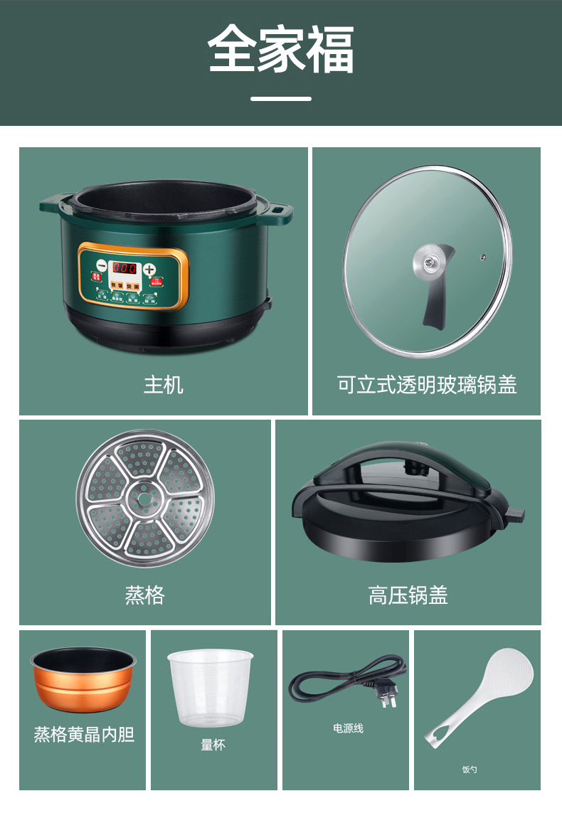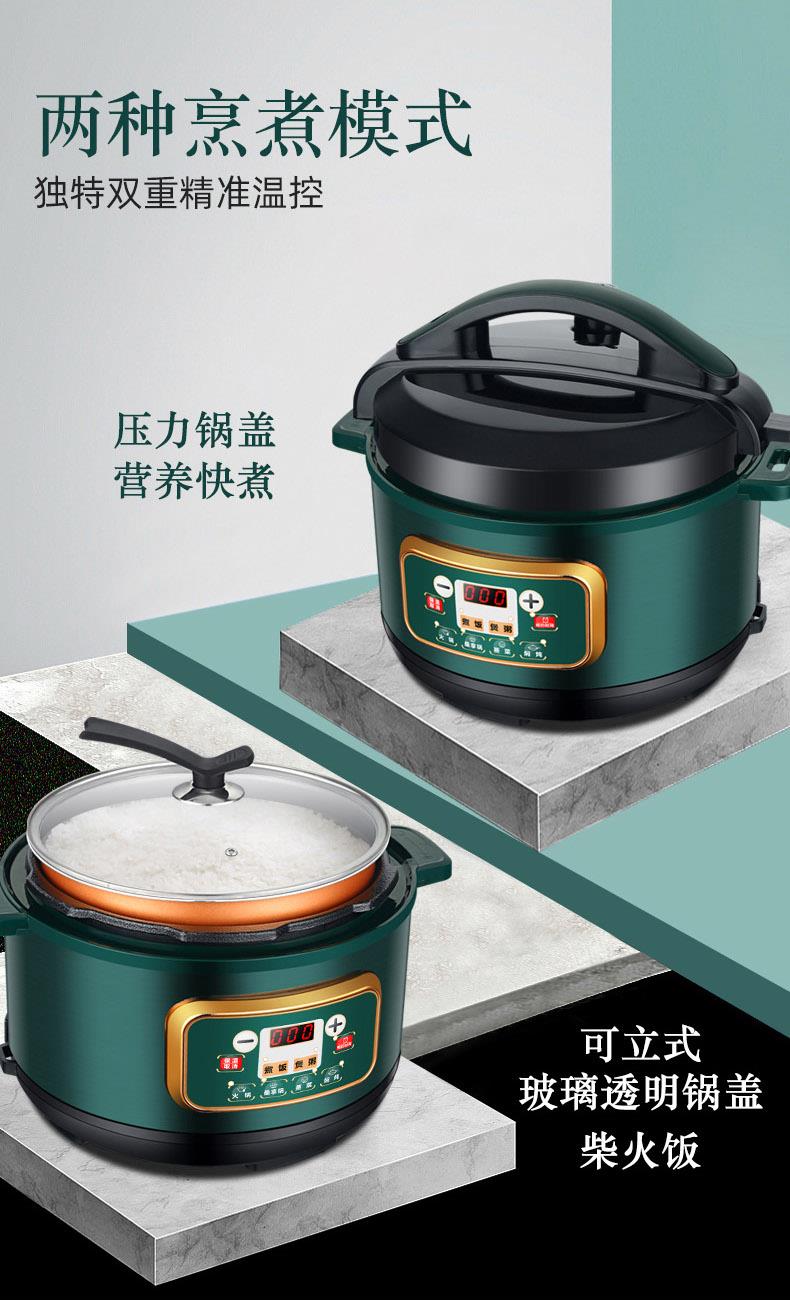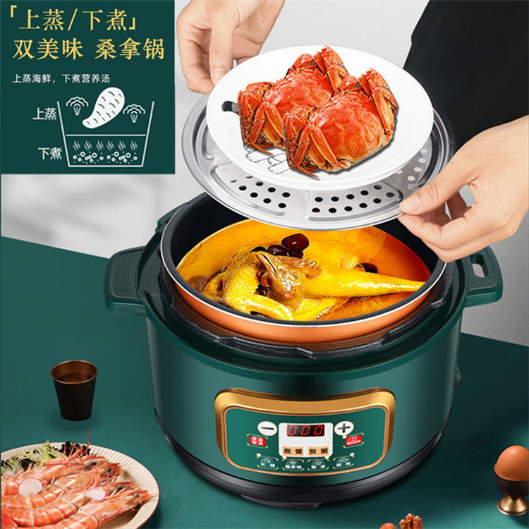 额定功率:1000W 加热方式:烤漆电热盘 额定频率:50HZ 内胆材质:黄晶内胆 额定电压:220V 额定容量:3L 预设菜单:6大预设功能 烹煮两用,带压力锅盖可立玻璃锅盖,锅盖自由切换,口感心选。煮煎炒炸焖锅。1000W速热底盘加热,可快速导热至整个热盘,实现均火效果受热更均匀。一锅双胆,蒸煮间隔内胆放置蒸格,即可蒸/煮同时进行,无隔间内胆,焖/煮/炖/火锅一锅搞定。五层加厚材质给健康增添煲。微电脑预设菜单,内设程序轻轻一按即启,两种烹煮模式,独特双重温控。内置营养烹煮程序,微电脑预约设计,预约时间档位长短可调控美味不过火候,一锅多能性价比高,可代替多种锅,10大安全保护贴心安全防护安心顺享美味。小巧机身一身技艺适合1-4人。放着不占地收纳起来也方便。