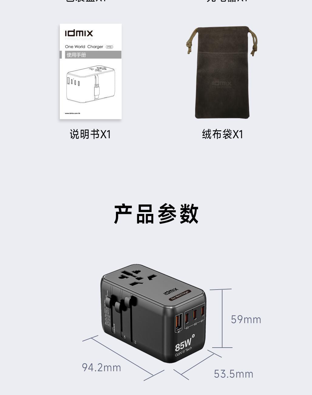 IDMIX全球通快充转换器P70