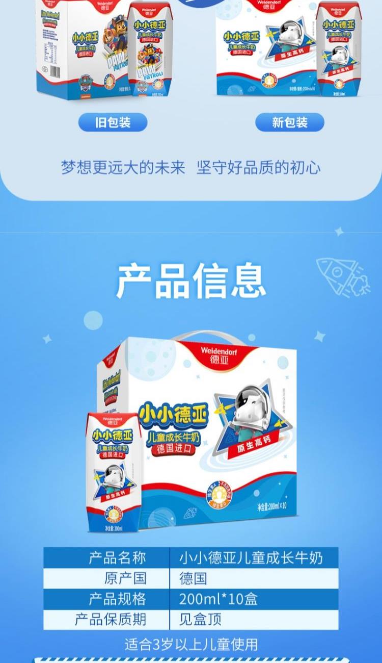 产品:小小德亚儿童成长牛奶 原产国:德国 产品规格:200ml*10盒