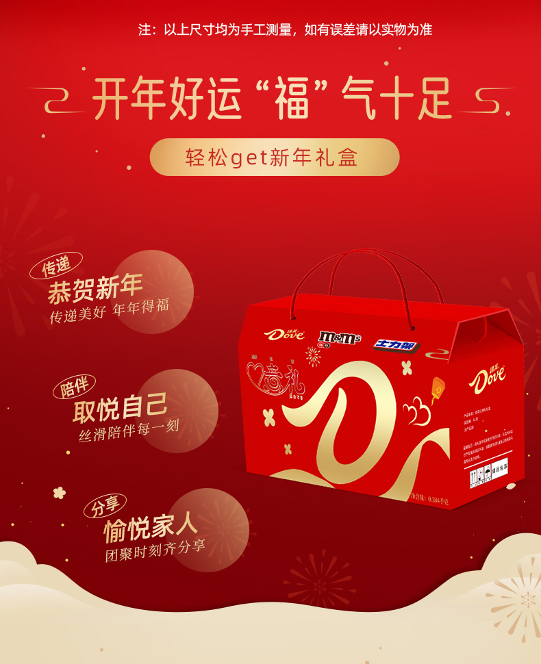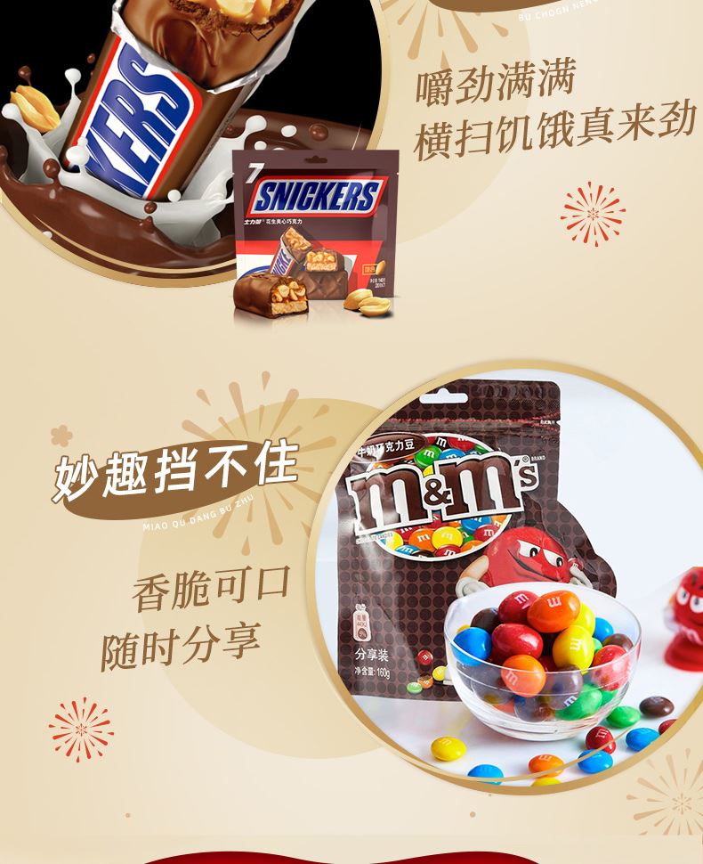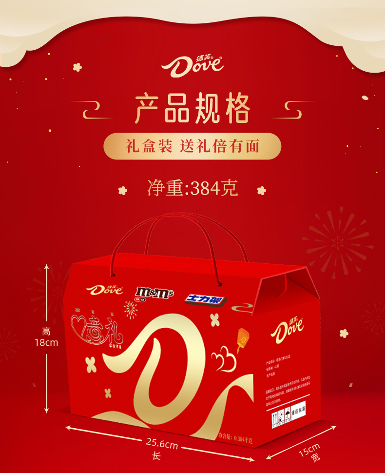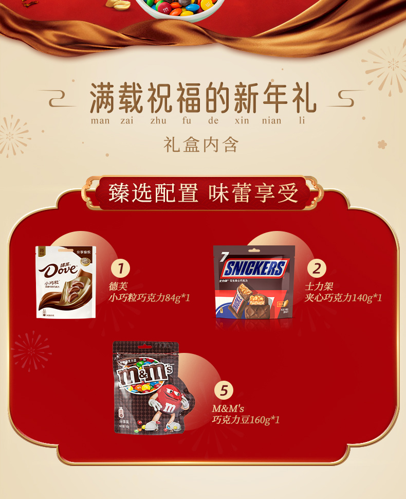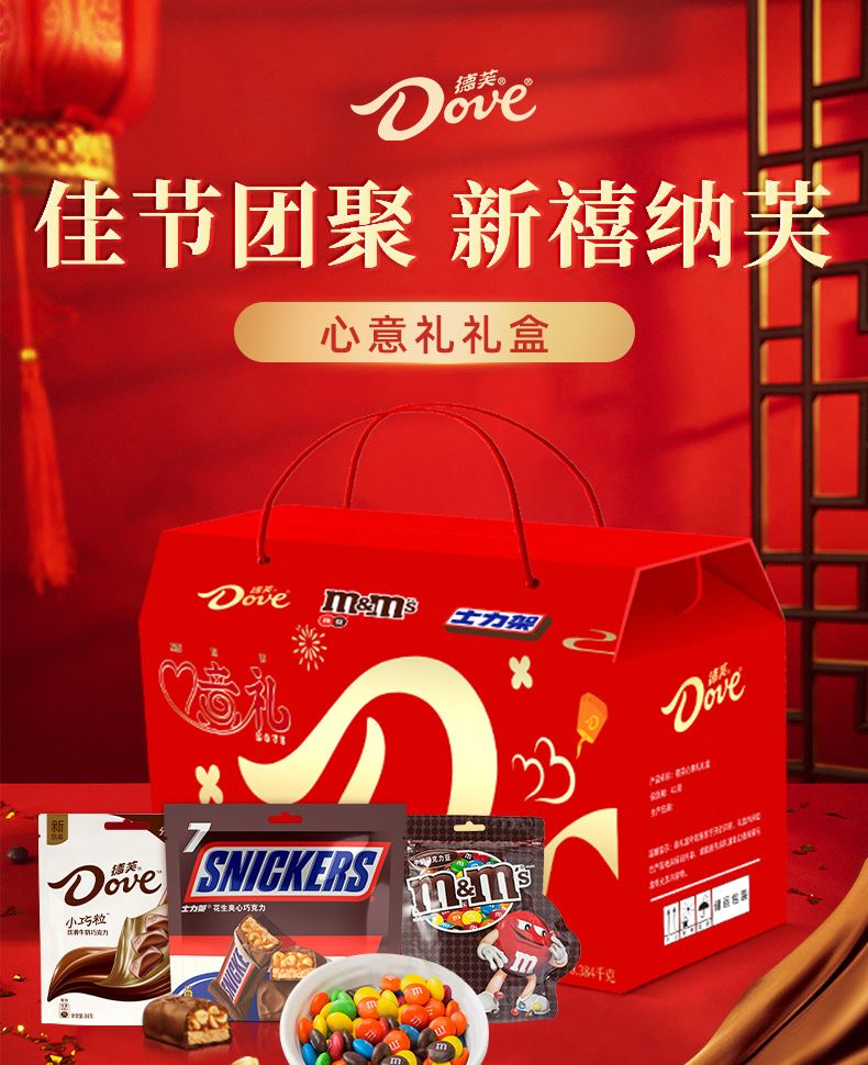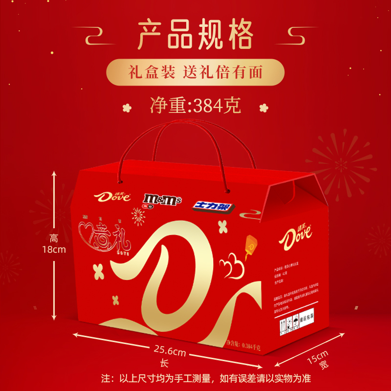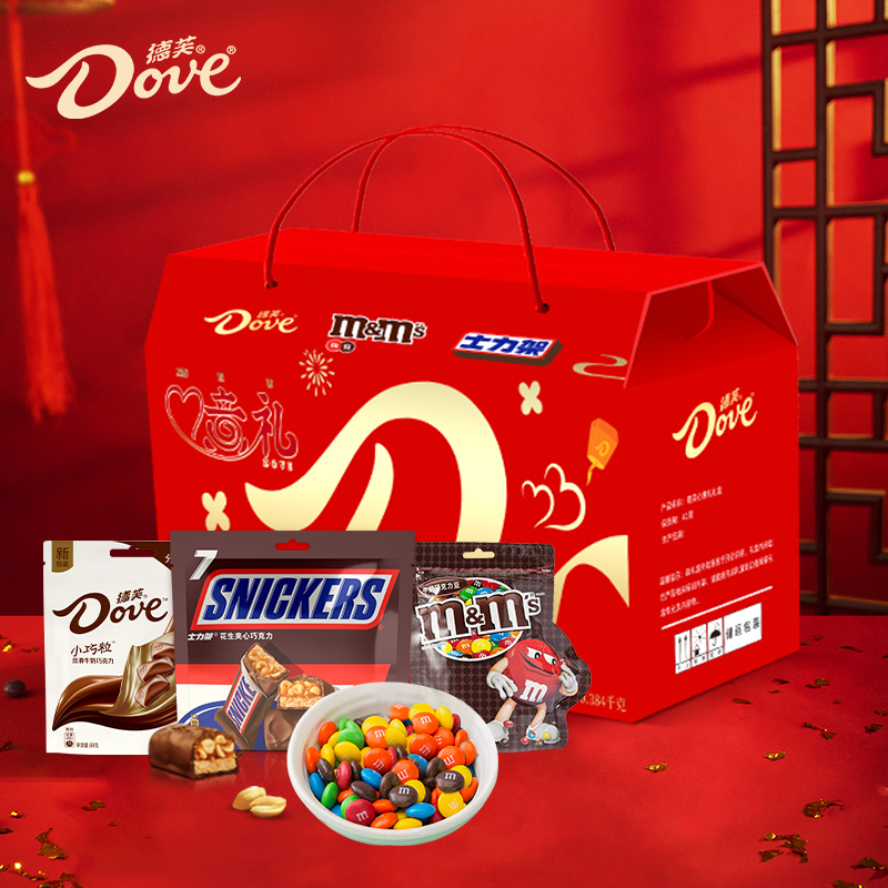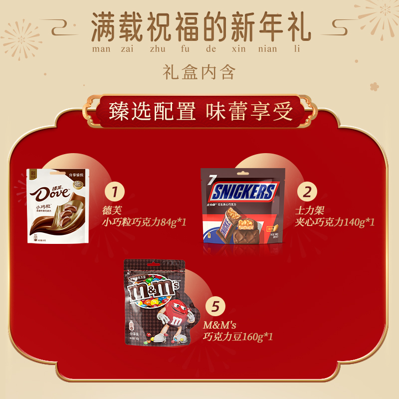 德芙 心意礼 礼盒384克 配置: 德芙小巧粒巧克力84g*1 士力架巧克力140g*1 M&M'巧克力160g*1