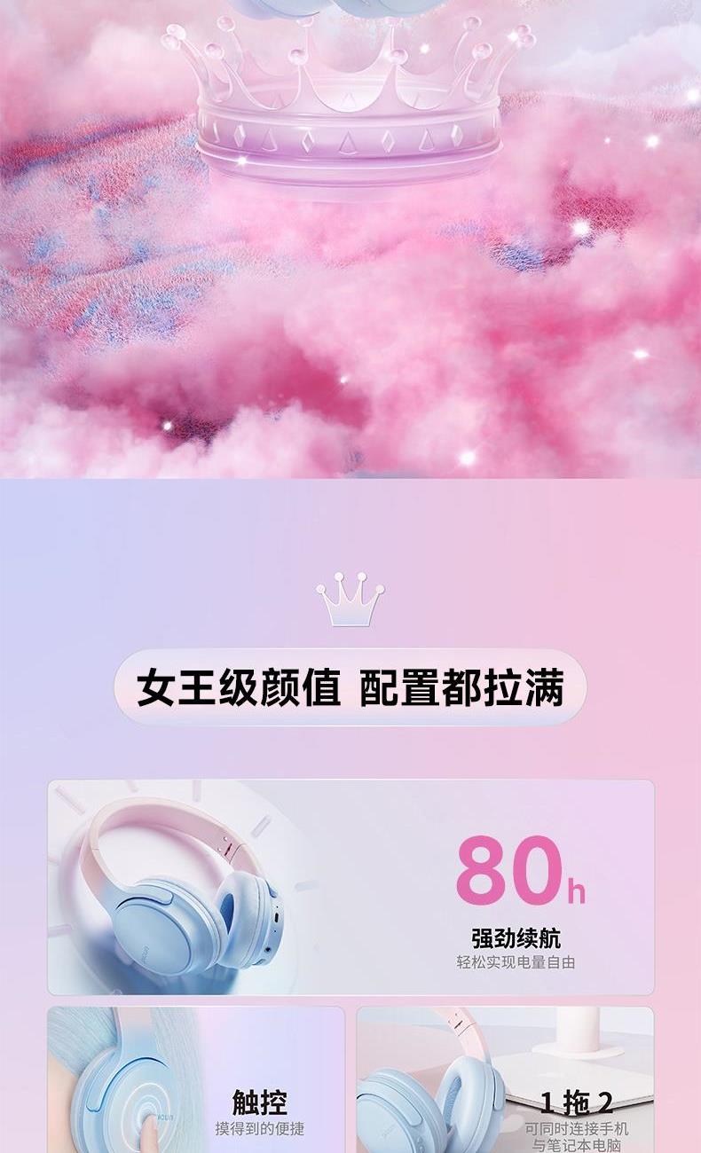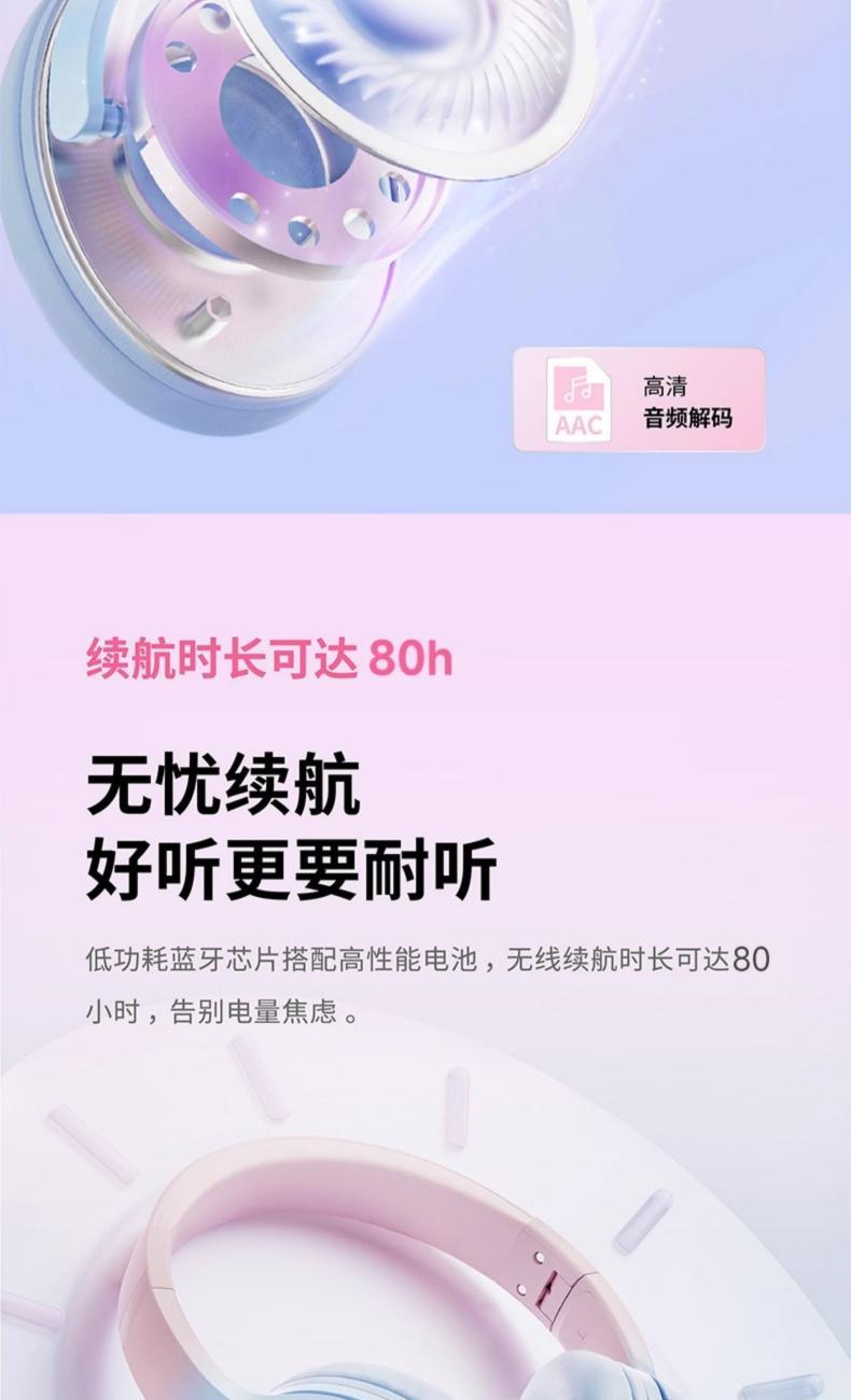 蓝牙版本:蓝牙5.4 蓝牙芯片:杰理6936 支持协议:A2DP、HFP、HSP、AVRCP 解码方式:SBC/AAC 蓝牙距离:10M 频率范围:20Hz-20KHz 电池容量:500MAH高性能锂电池 使用时间:80小时 充电时间:2H 充电接口:TYPE-C 喇叭尺寸:40MM 阻抗:32Ω±15% 播放模式:插音频线、蓝牙 喇叭灵敏度:103±3DB 麦克风灵敏度:-42±3DB 耳机配置:耳机、充电线、说明书、不带麦音频线包装尺寸:21*18*9cm