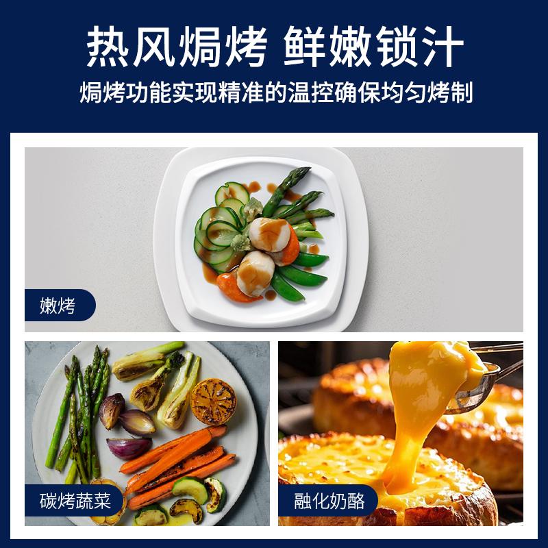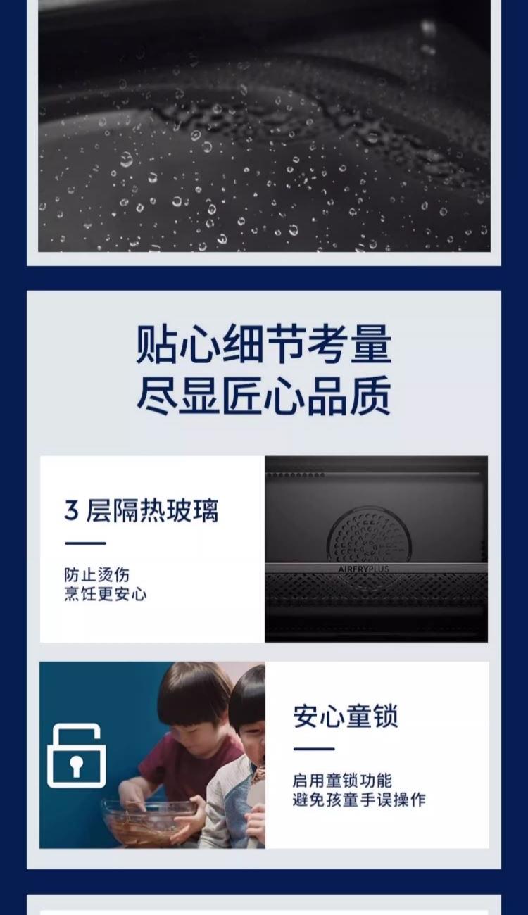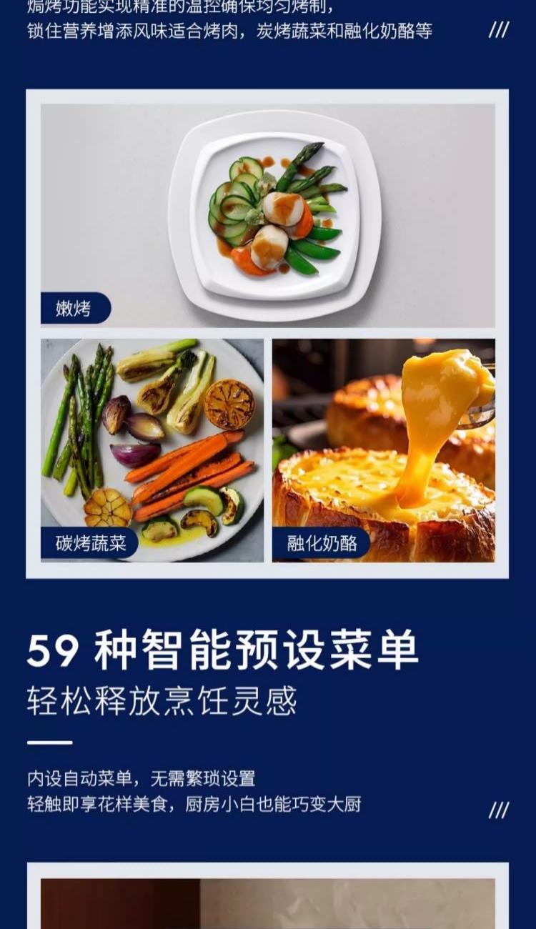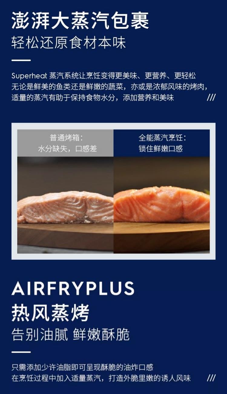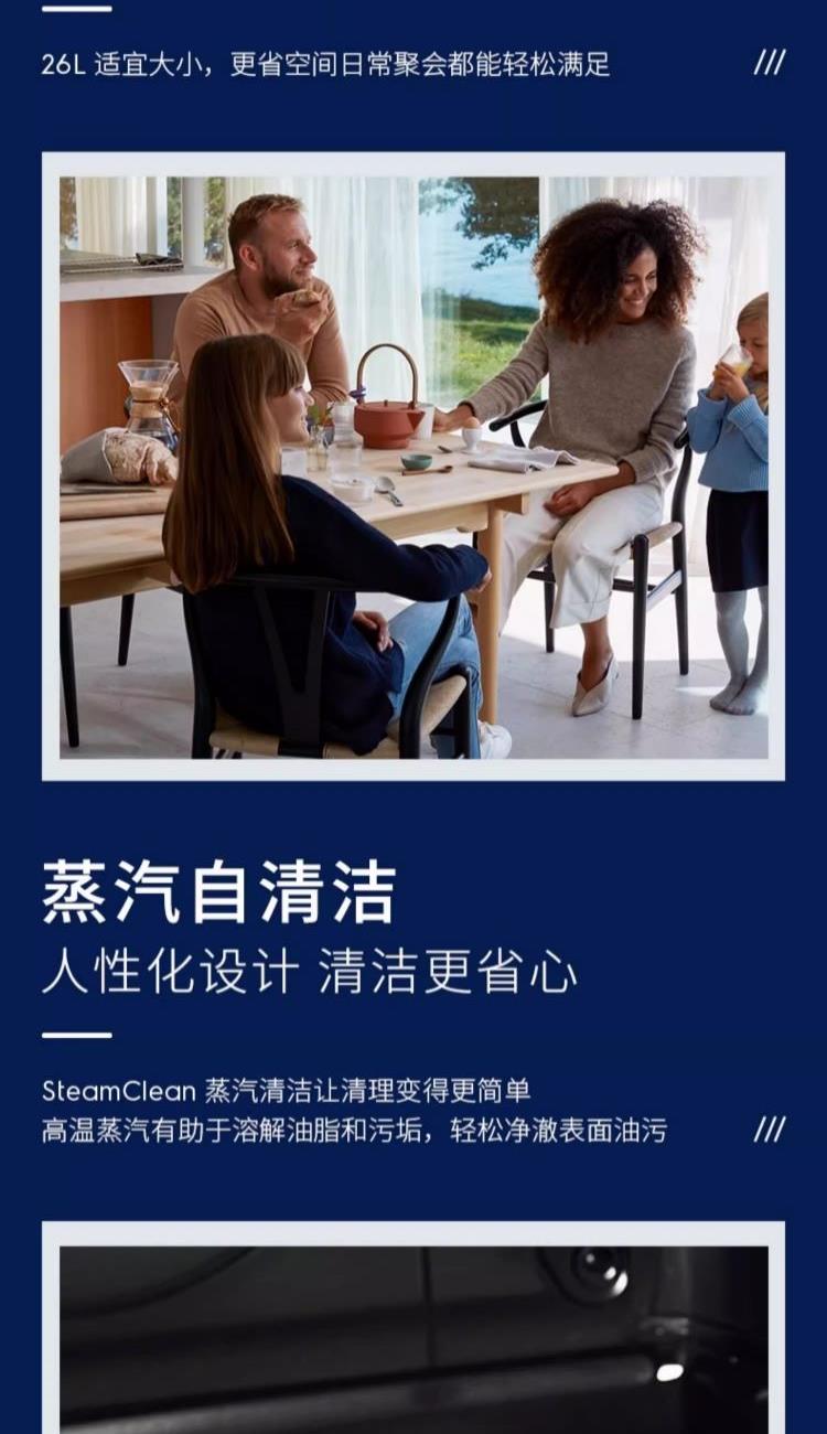 额定电压:220V 额定功率:50Hz 额定功率:1500W 产品容量:26L 功能数量:6 程序数量:50 内胆材质:不锈钢 产品尺寸:504*454*340mm 产品净重:15.8kg 主要材质:金属涂层 控制方式:触碰&旋钮 开门方式:下拉式开门 玻璃材质:三层隔热玻璃,中层LOW-E玻璃 腔体材质:304不锈钢 蒸发模式:蒸发盘加热 蒸汽系统|热风蒸烤|焗烤功能|早餐清蒸汽|蒸汽自清洁|童锁功能|26L