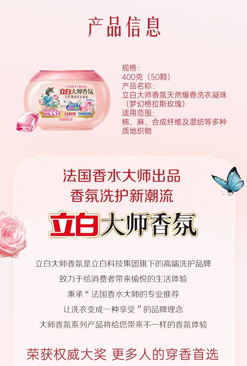 立白大师香氛天然爆香洗衣凝珠400克(50颗)