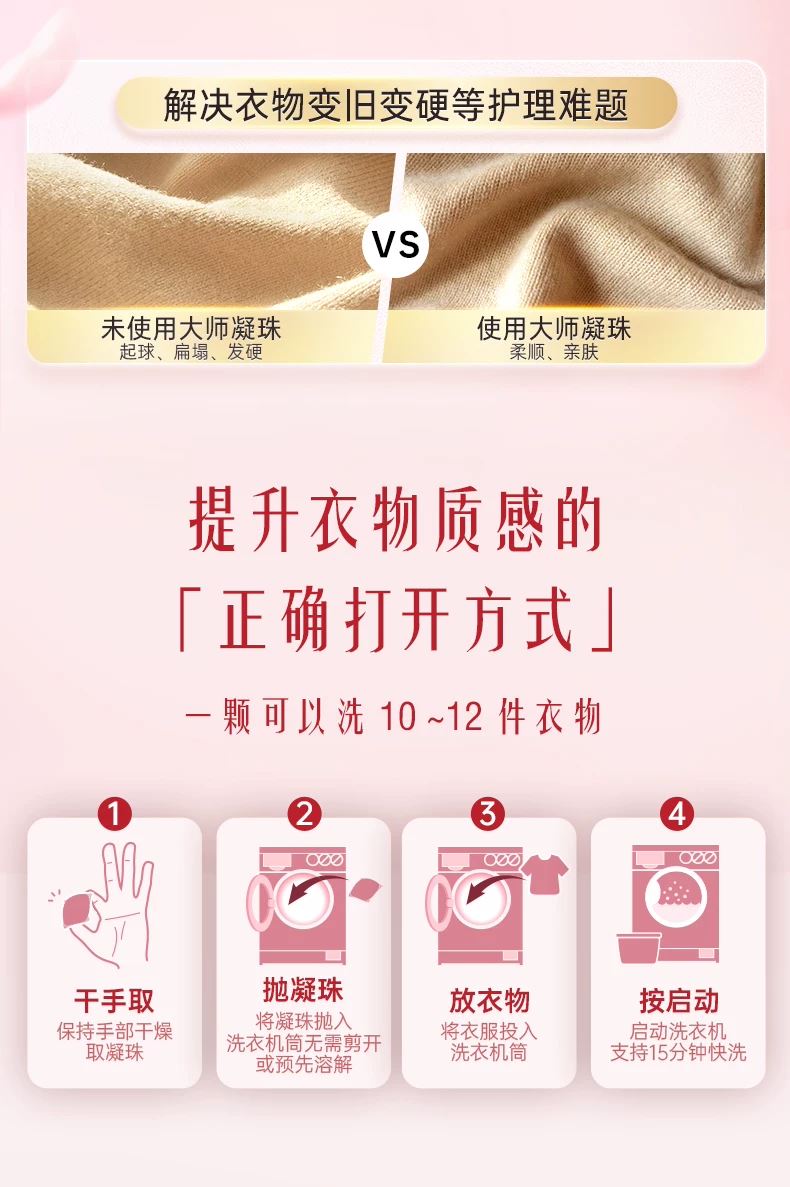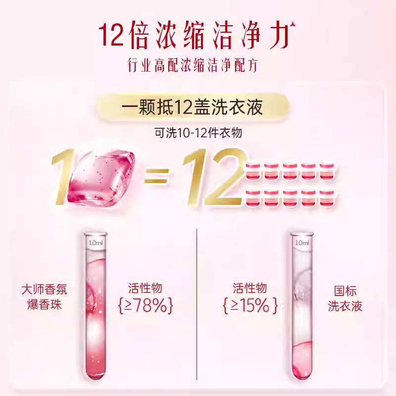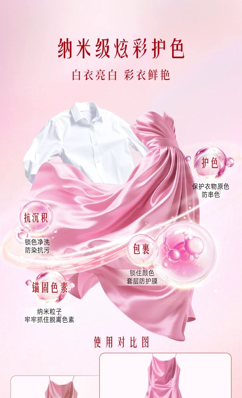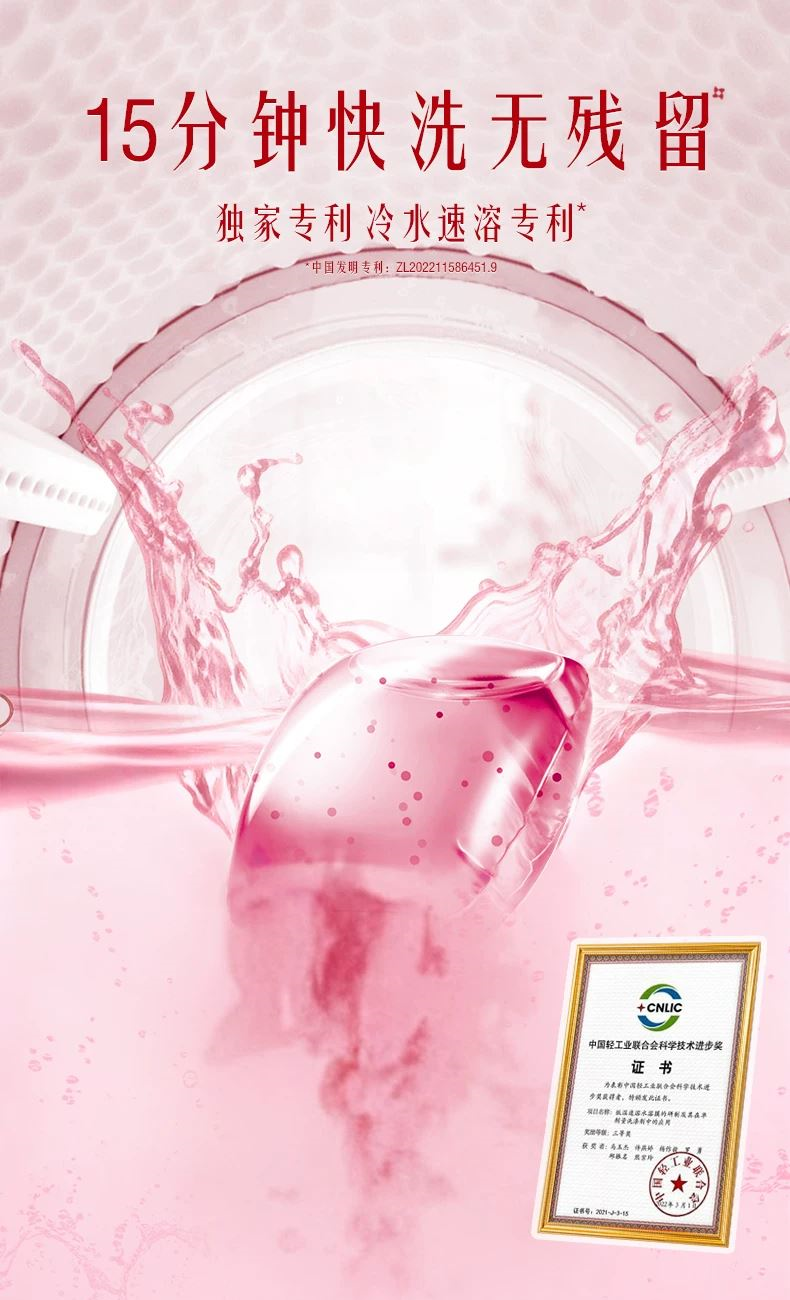 保质期限:3年 产品成分: 表面活性剂(含椰子油精华、橄榄油精华)、助剂(含稳定剂、污垢分散剂)、酶制剂(天然酵素)、香精、着色剂、爆香精粹粒子、柔顺因子 产品功效: 6效合1:33天留香、12倍浓缩更洁净、6大异味祛除、纳米级护色科技、亲肤抗静电、柔顺不发硬;15分钟快洗无残留