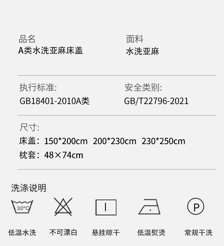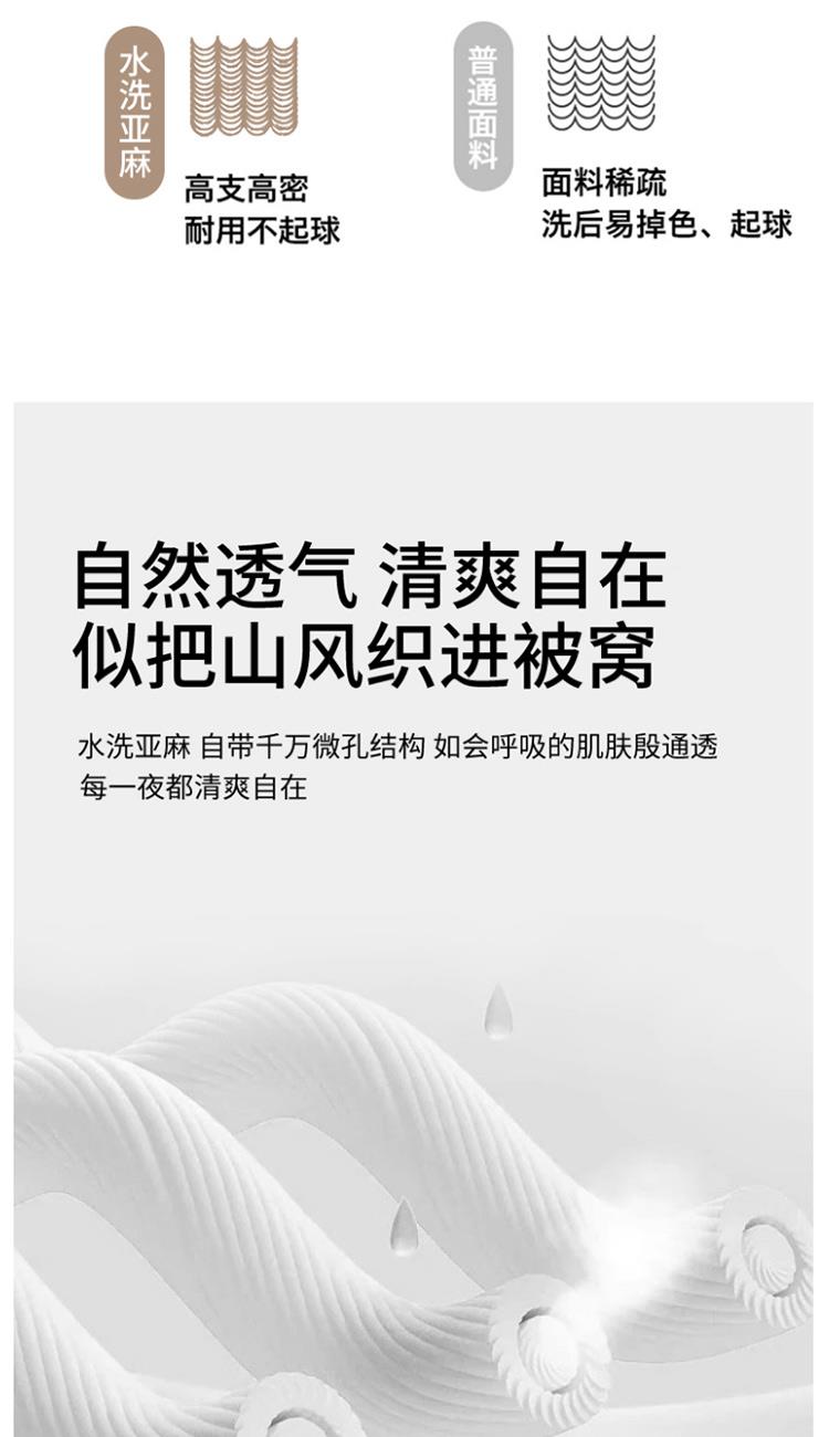 1:自然深睡 生活美学 水洗亚麻床盖 可铺可盖多功能使用 2:邂逅水洗亚麻面料,自然肌理绵柔如躺在轻柔的云间 疲惫感悄然消失 3:整张超柔羽丝棉填充设计蓬松柔软舒适透气 适合裸睡 尺寸:200*230cm*1 包装:彩盒
