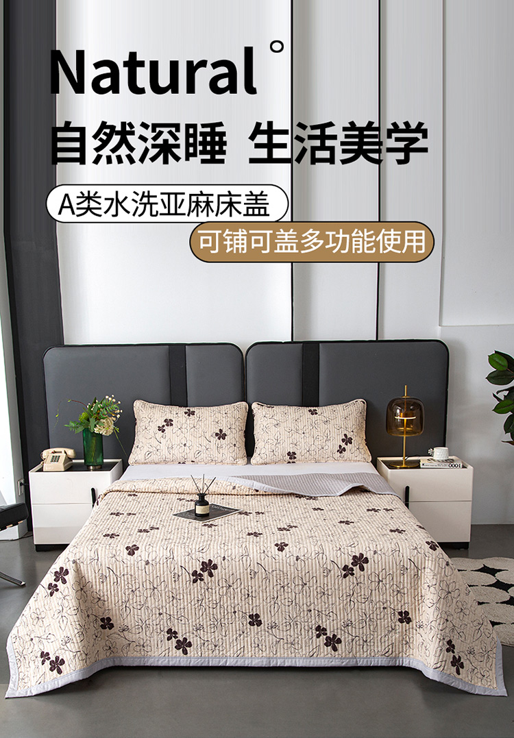 花花公子-家纺-水洗亚麻可铺可盖多功能床盖