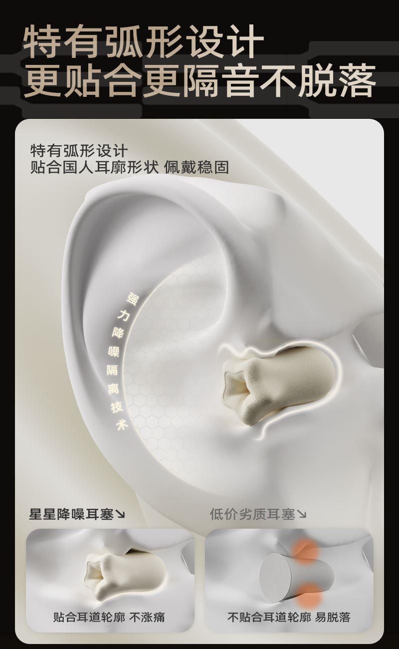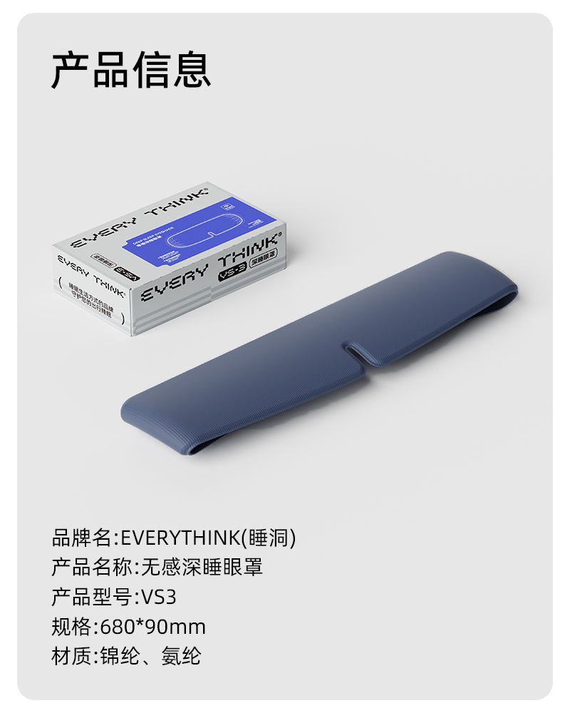 ES2 护脖枕 规格参数: 外侧:涤纶56.3%,氨纶7.1%,棉36.6% 内侧:锦纶85.9%,氨纶14.1%;填充物:聚氨酯 规格:护脖枕*1;硅胶收纳包*1 单台包装尺寸:125*125*180;单台重量:550(含彩盒) 规格:24台 可选颜色:象牙白、樱花粉、紫罗兰、黑曜灰 冰川灰 VS3 眼罩 规格参数: 外侧面料 :74%锦纶,26%氨纶; 内侧面料:87%聚酯纤维,13%氨纶 规格:眼罩*1 单台包装尺寸:155*43*95;单台重量:50g(含彩盒) 规格:168台 可选颜色:黑色、米白、紫色 RS2 星星耳塞 规格参数:硅胶,水性聚氨酯 规格:耳塞*6(三对装);硅胶收纳包*1 单台包装尺寸:70*30*83;单台重量:34g(含彩盒) 可选颜色:星雾紫、暖月白、桃桃粉