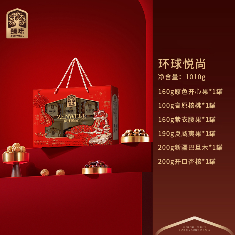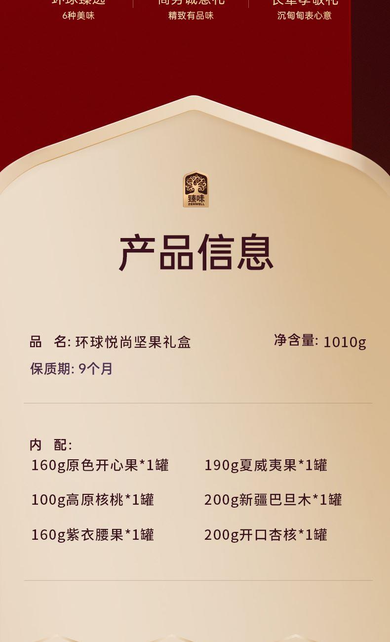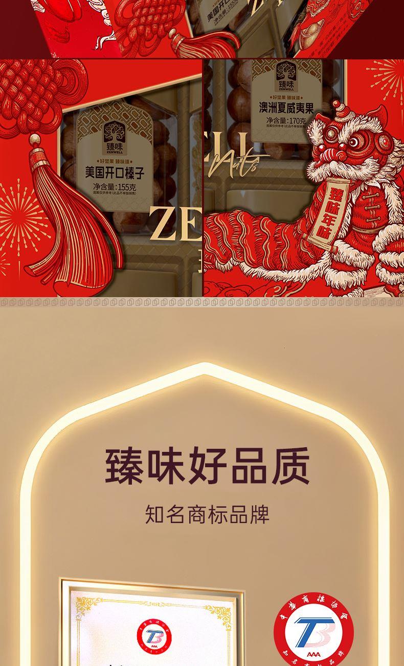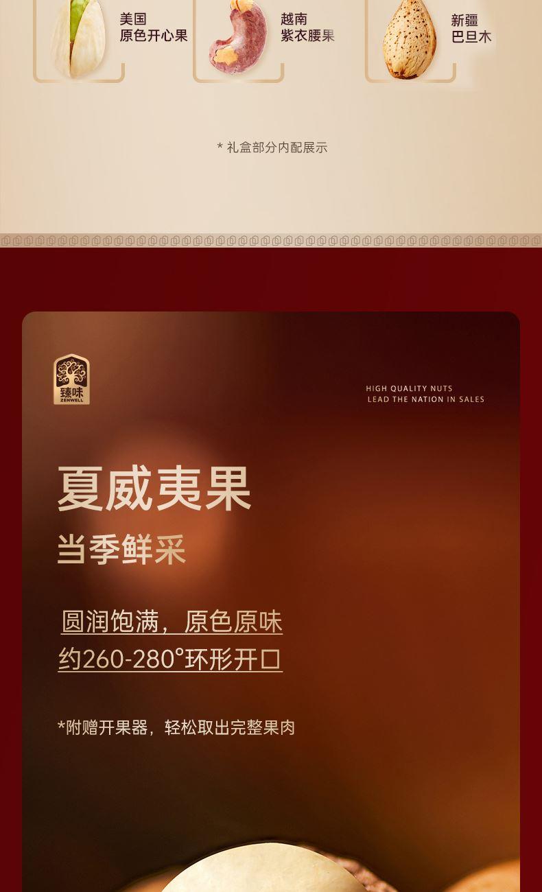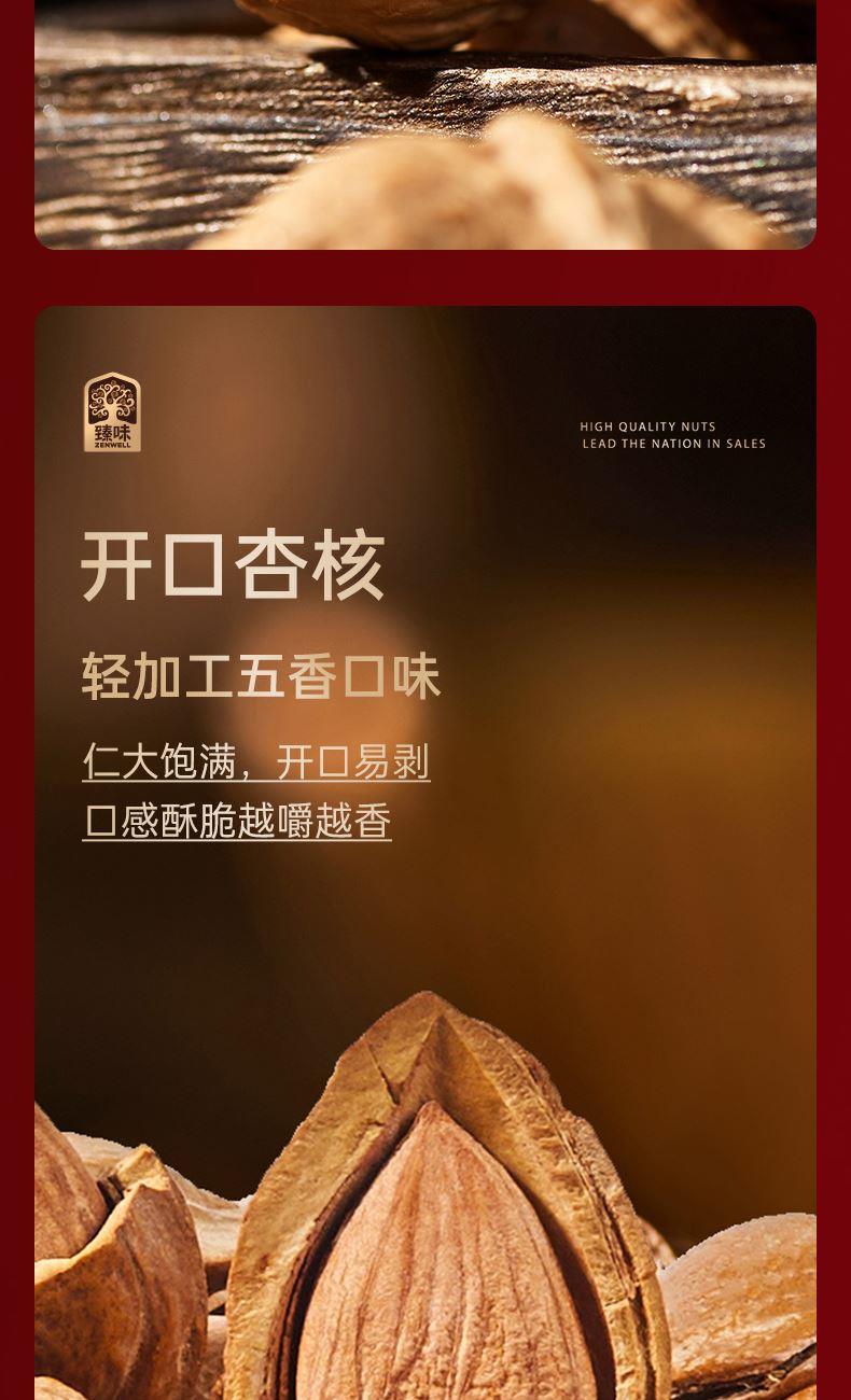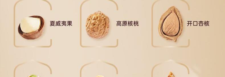 170g美国原色开心果*1 90g高原核桃*1 170g越南紫衣腰果*1 190g夏威夷果*1 200g新疆巴旦木*1 190g开口杏核*1