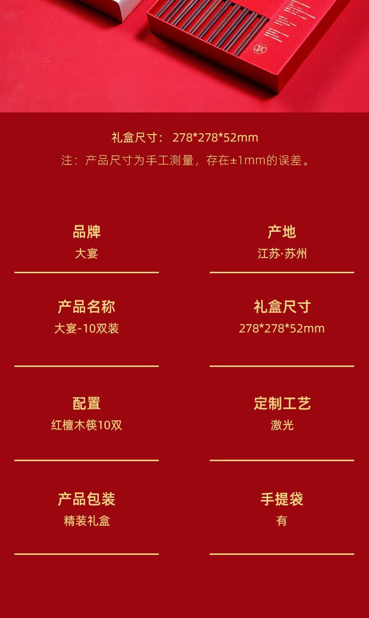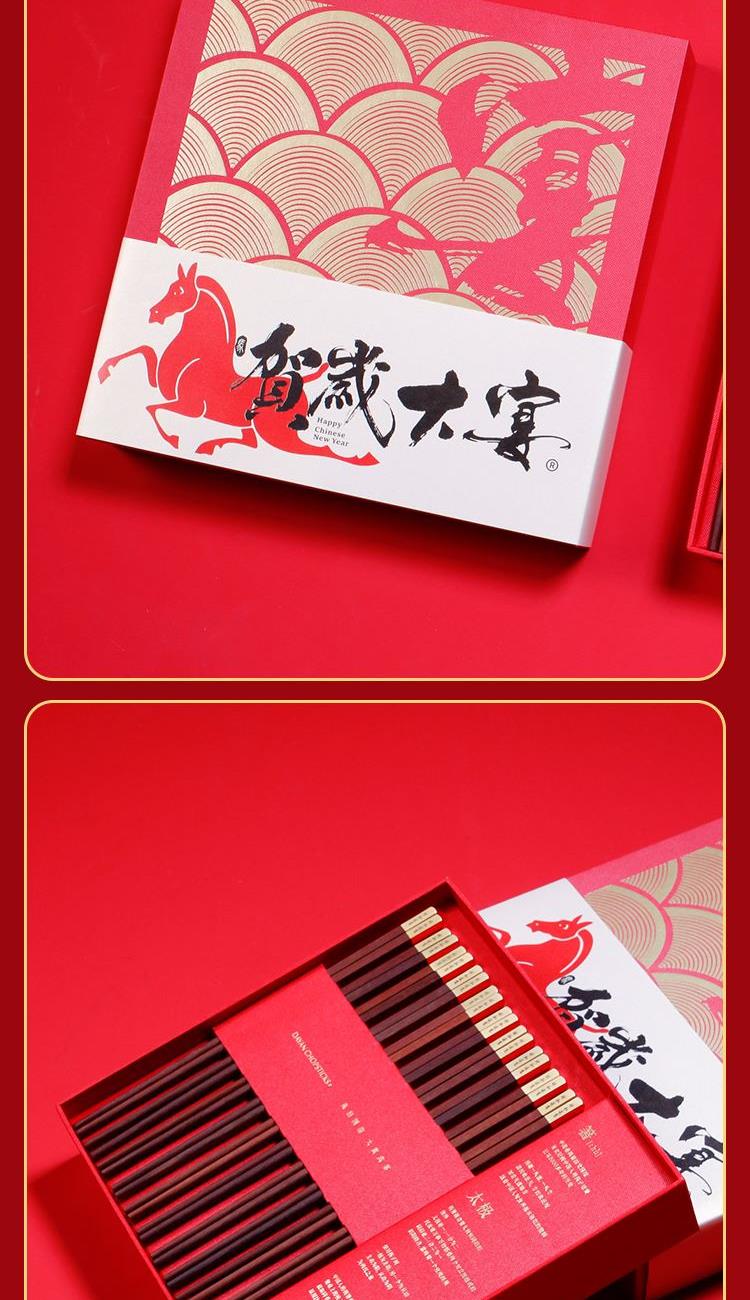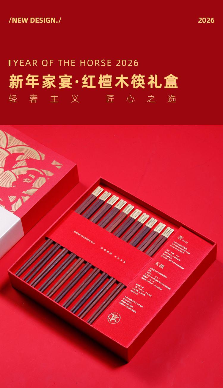大宴2026【红檀木筷】10双装新年家宴礼盒