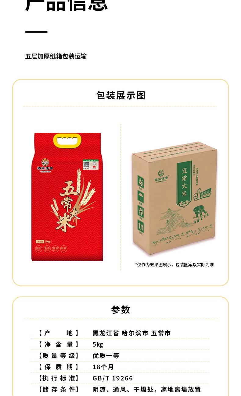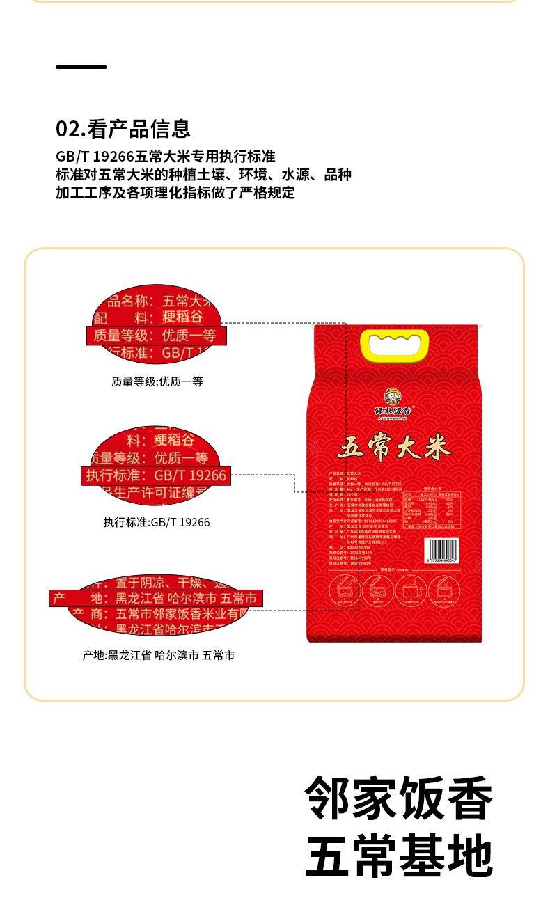 邻家饭香一级五常大米5kg/袋真空双层LJFX133