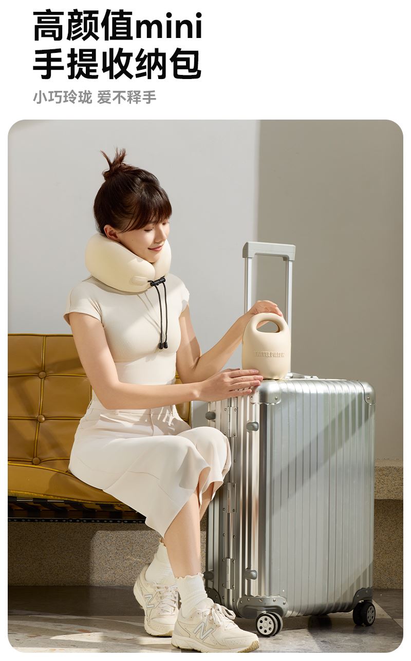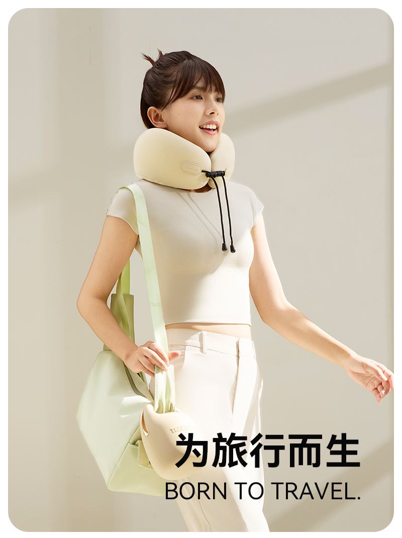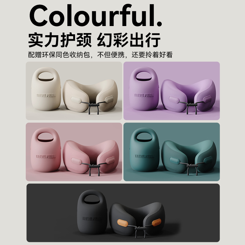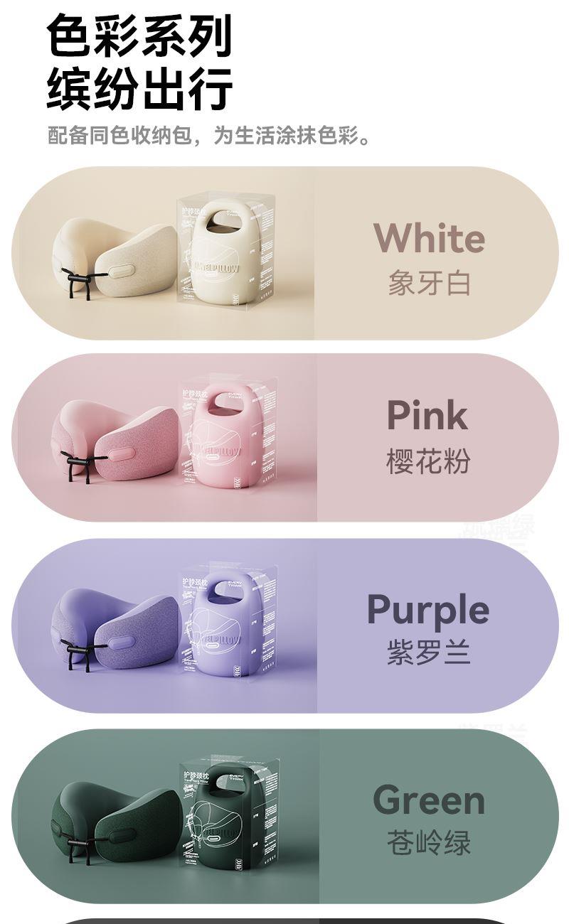 颜色:淡粉 米白 深灰 雅紫 墨绿 单台包装尺寸:125*125*180mm 单台重量:550g(含彩盒) 卖点: 1、小体积。硅胶包收纳,提着就走 2、轻盈无感,不失支撑性,记忆棉能提升颈椎支撑力 3、舒适面料优等品:莱卡布料,增加枕套弹性和柔软度 4、多彩选择,时尚搭配 5、多场景使用: 飞行旅途/精致露营/办公午休皆可满足
