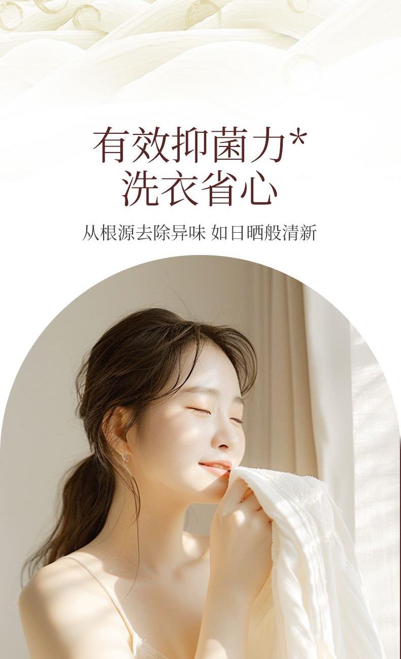 1、温和洁净,护衣护色,柔顺留香。 2、天然洁净因子,快速释放洁净成分,深层瓦解,轻松祛除衣物上多种顽固污渍。