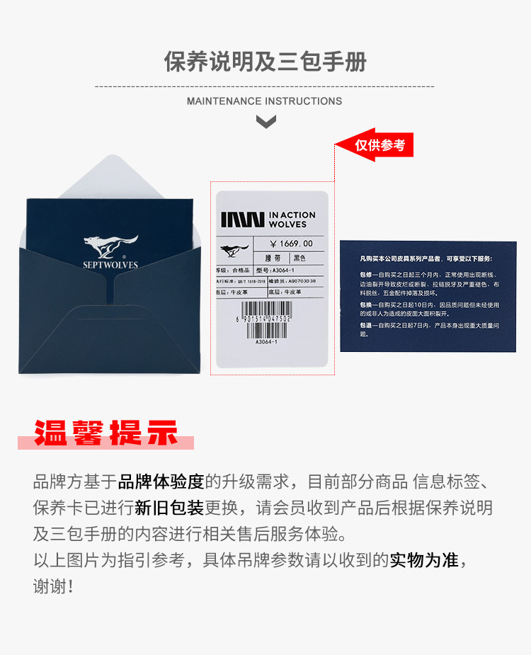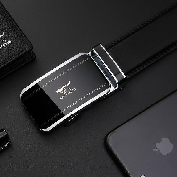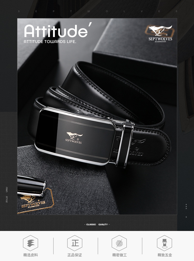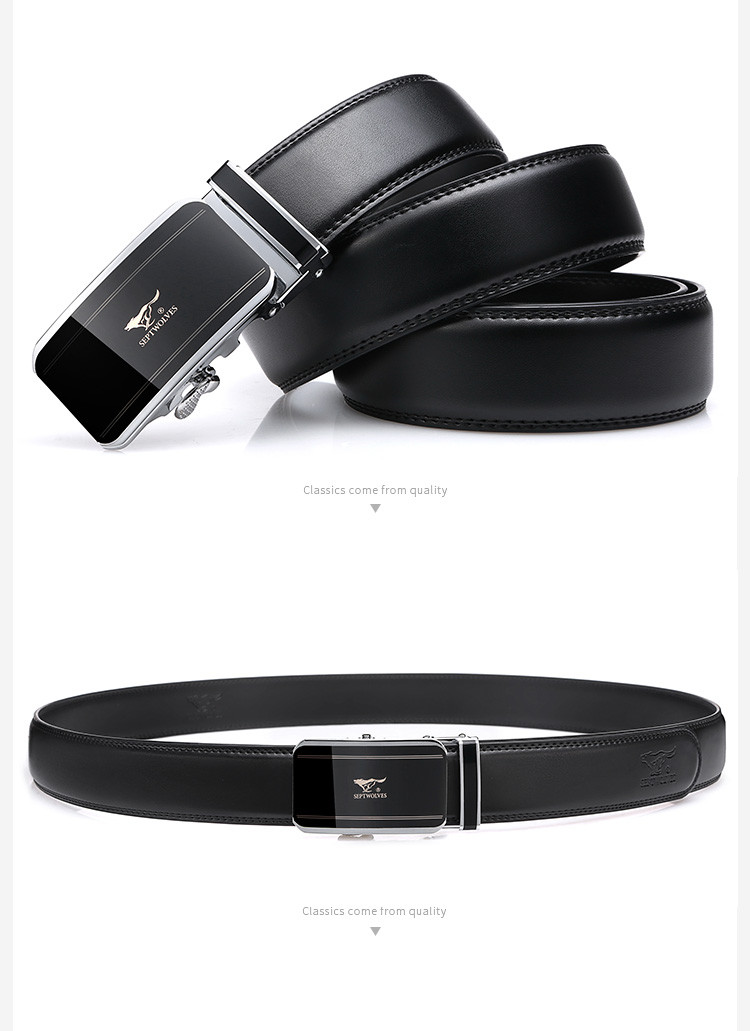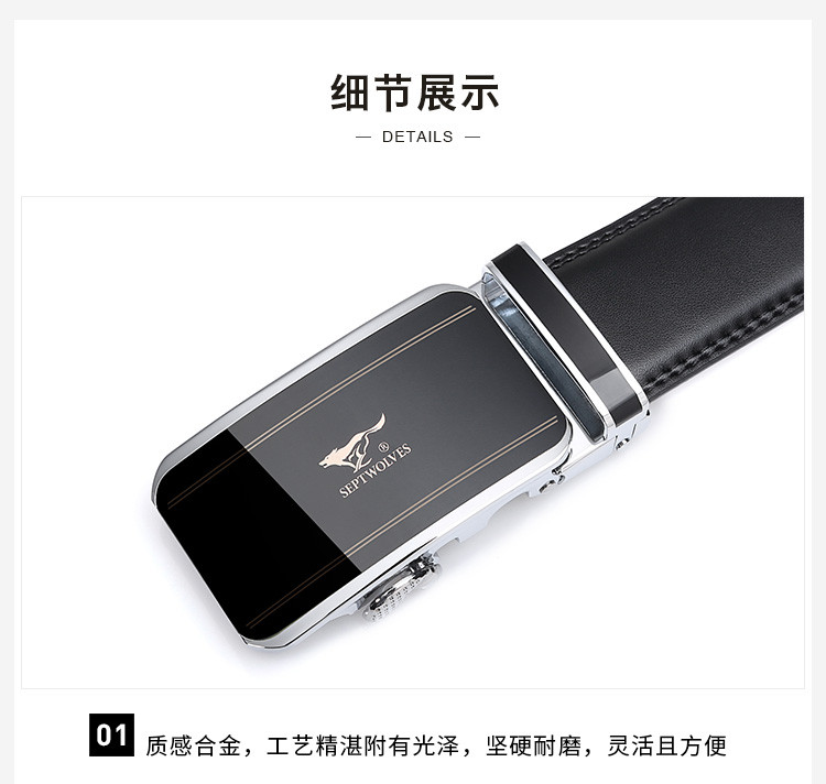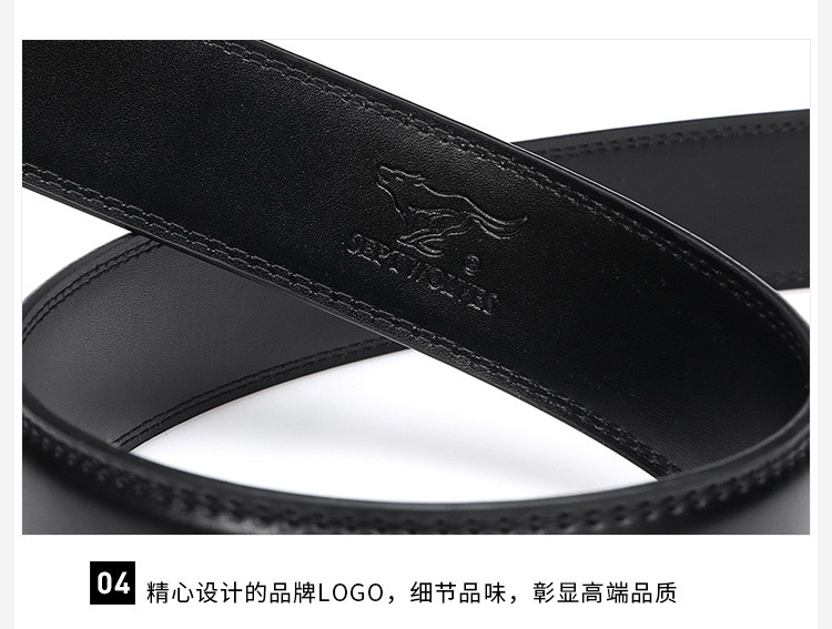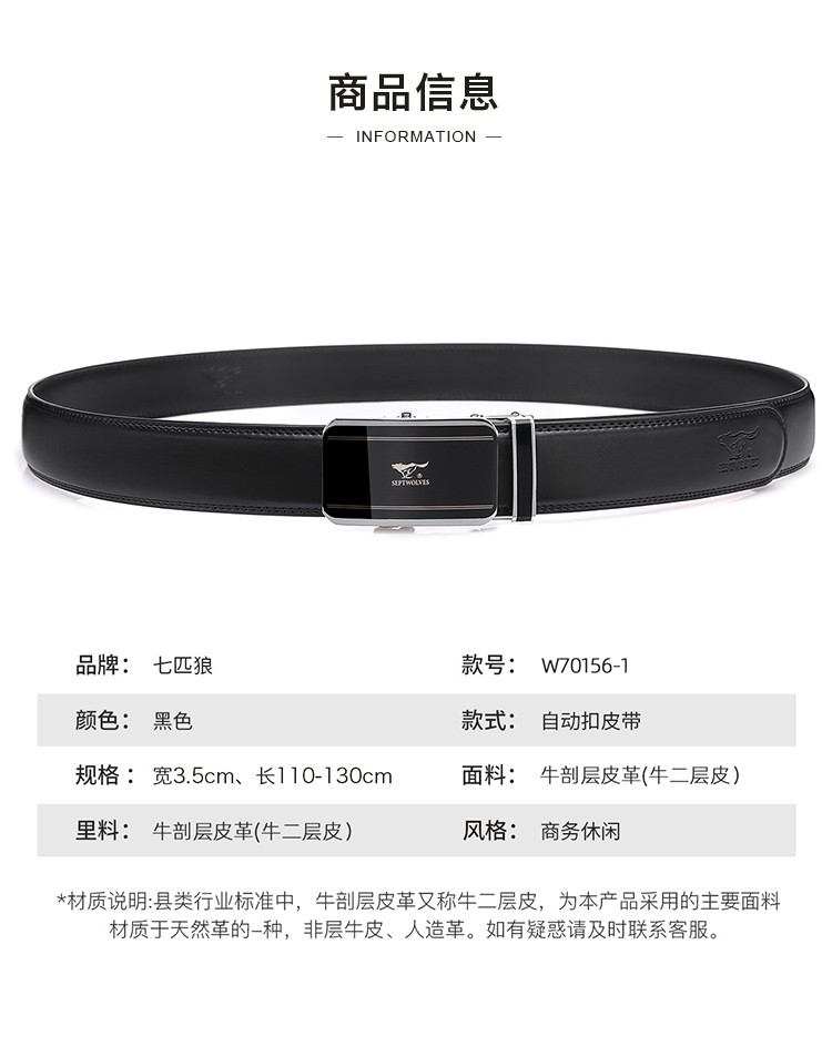 工艺:光面 带扣:自动扣 主体材质:头层牛皮 带扣材质:合金 风格:通勤风 商务风 宽度:3.5CM 送爱人,送长辈,送男士 时尚设计扣头,经典个性,简约百搭,磨砂背扣,材质柔软,手感舒适,经典狼标LOGO 代写贺卡,传递心声,精美礼盒,送礼佳品